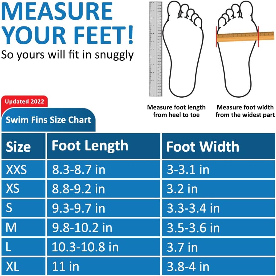جدول المقاسات المحدث - يرجى التأكد من قياس قدميك باستخدام صورة جدول المقاسات الخاصة بنا للحصول على مقاسك المثالي. ملحوظة: اغسل أو اشطف زعانف السباحة للفتيات والفتيان بعد الاستخدام، خاصة عند استخدامها في حمام سباحة مكلور، لتجنب تكسرها. ضعها أيضًا في وسادات الزعانف عند عدم استخدامها لإبقائها في حالة ممتازة.