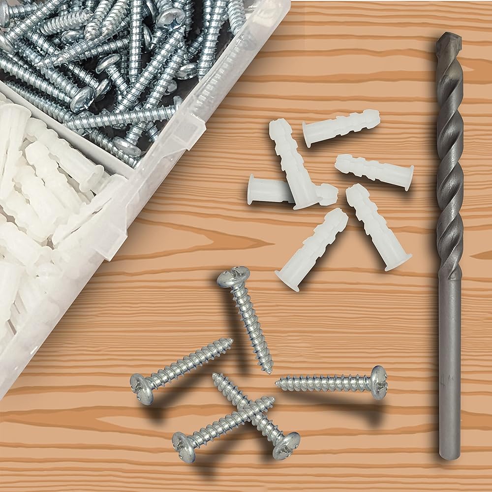 High Quality Material: The blue anchors and screws are made of strong materials with high quality just to ensure the best performance. The Philips screws are made of high-strength carbon steel which is rust and corrosion resistant. The concrete anchors are made of plastic material which lasts longer and doesn't get rubbed out.