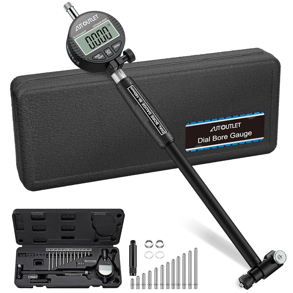 مجموعة قياس التجويف الرقمي للقرص AUTOUTLET 50-160 مم (2-6 بوصة)، 0.01 مم (0.0005 بوصة) مقياس التجويف الدقيق مع مقياس القرص، 12 سندان، أداة قياس الفتحة العميقة