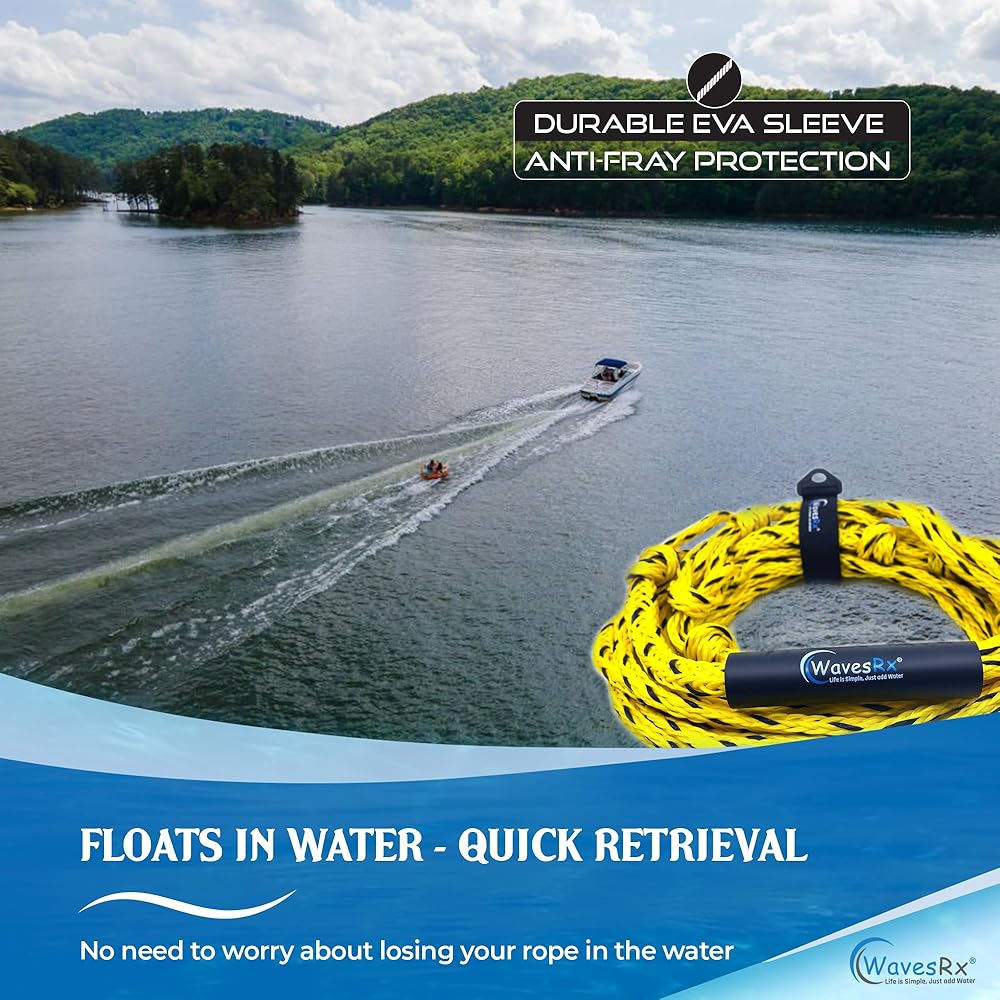 يطفو على الماء - استرجاع سريع: لا داعي للقلق بشأن فقدان الحبل القابل للقطر في الماء مرة أخرى. يطفو حبل السحب WavesRx على الماء من أجل استرجاعه بسرعة وسهولة. غلاف سميك من إسفنج EVA يمنع الاهتراء عن طريق حماية الحبل من الاحتكاك بقاربك.