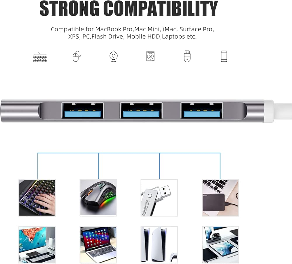 【توافق رائع وسهل الاستخدام】: التوصيل والتشغيل بالكامل بدون أي برامج تشغيل. متوافق مع أنظمة التشغيل Windows 10/8/8.1/7 / Vista / XP وMac OS X وLinux وChrome OS. (يتوافق محور USB 3.0 العكسي مع USB 2.0 وUSB 1.1.)