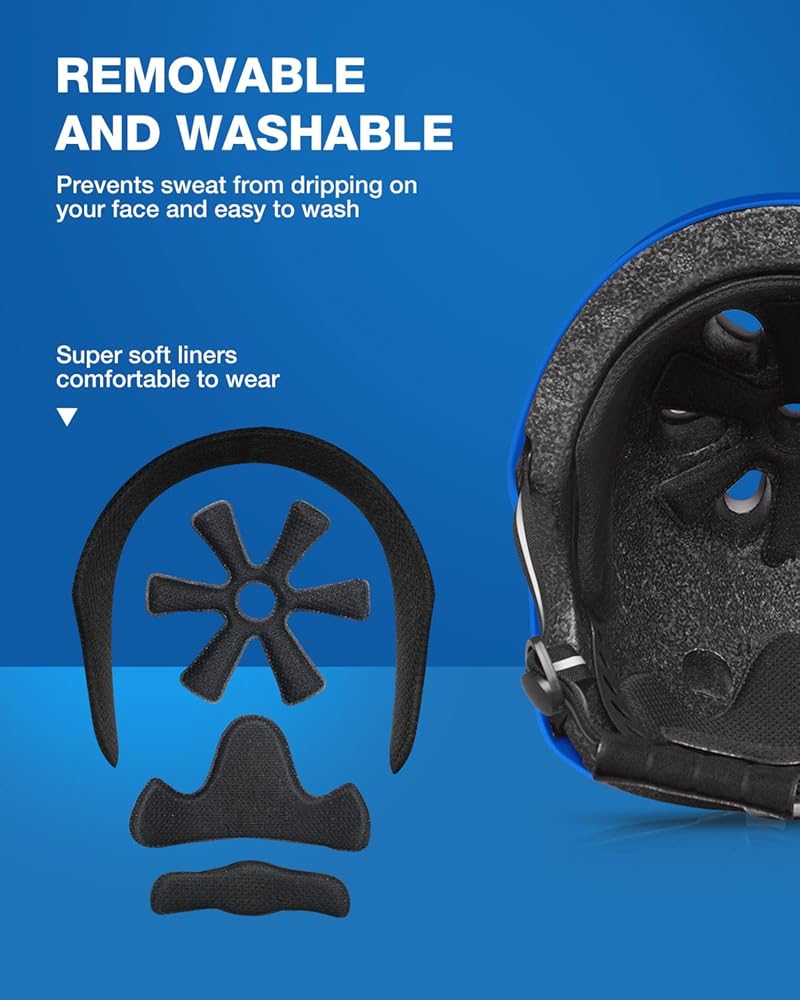 قابلة للإزالة والغسل - تأتي خوذات التزلج للشباب/المراهقين مع بطانة داخلية قابلة للإزالة، والتي يمكن أن تمنع العرق من السقوط على وجهك، ويمكن غسلها وصيانتها بسهولة.