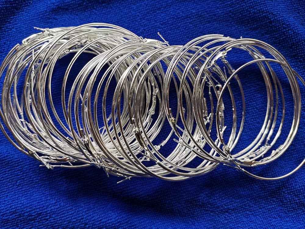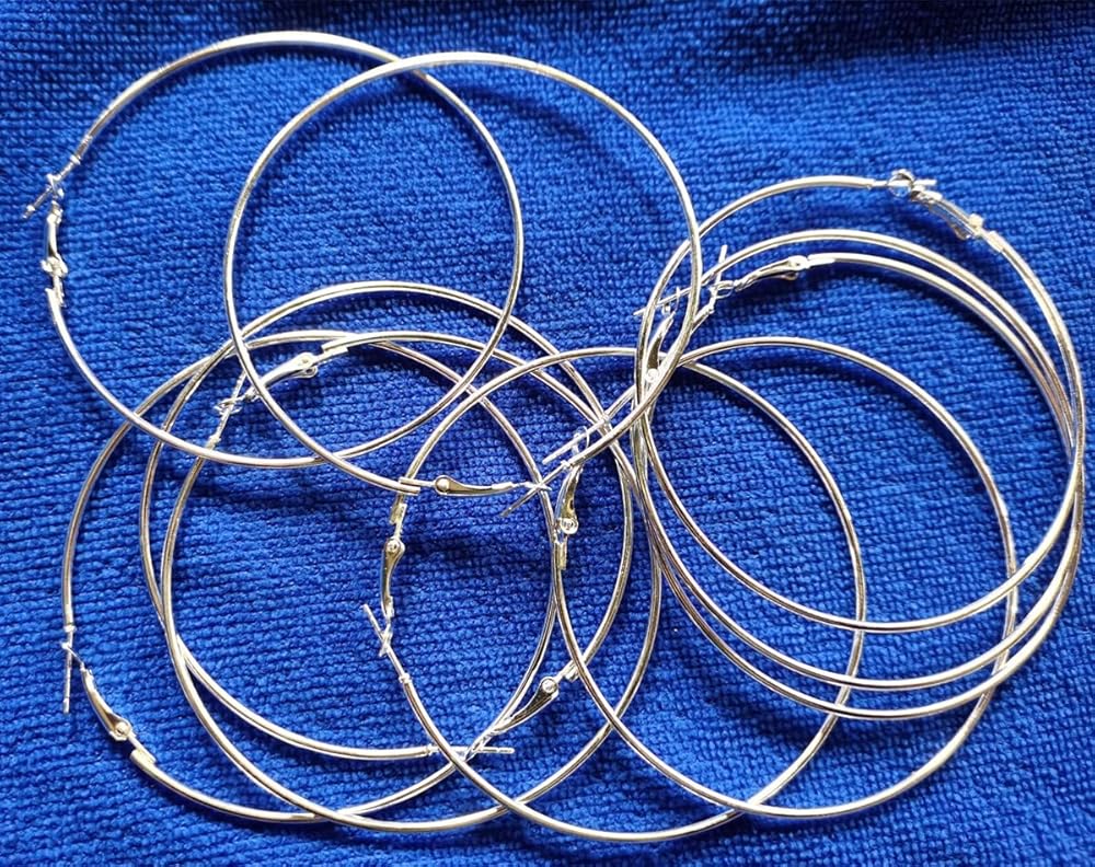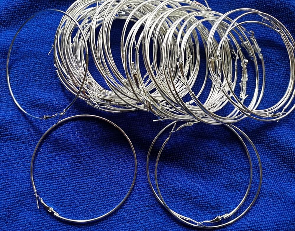 This listing is for 50PCS or 25 Pairs silver plate metal earring hoops for jewelry making,65mm-70mm (or 2.55 Inch-2.75 Inch) in diameter.
