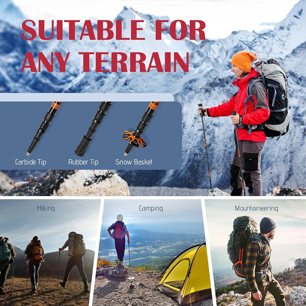 • ✅【أشرطة اليد والإكسسوارات】- أعرض وأكثر سلاسة ومرونة، مما يجعلها أكثر مسامية وأقل احتمالية للتسبب في الاحتكاك. للتأكد من أنك مستعد للتضاريس المختلفة، تأتي الأعمدة مع زوج من الأغطية المتينة ذات الأطراف القابلة للإمساك ومجموعة واحدة من سلال المشي لمسافات طويلة.
