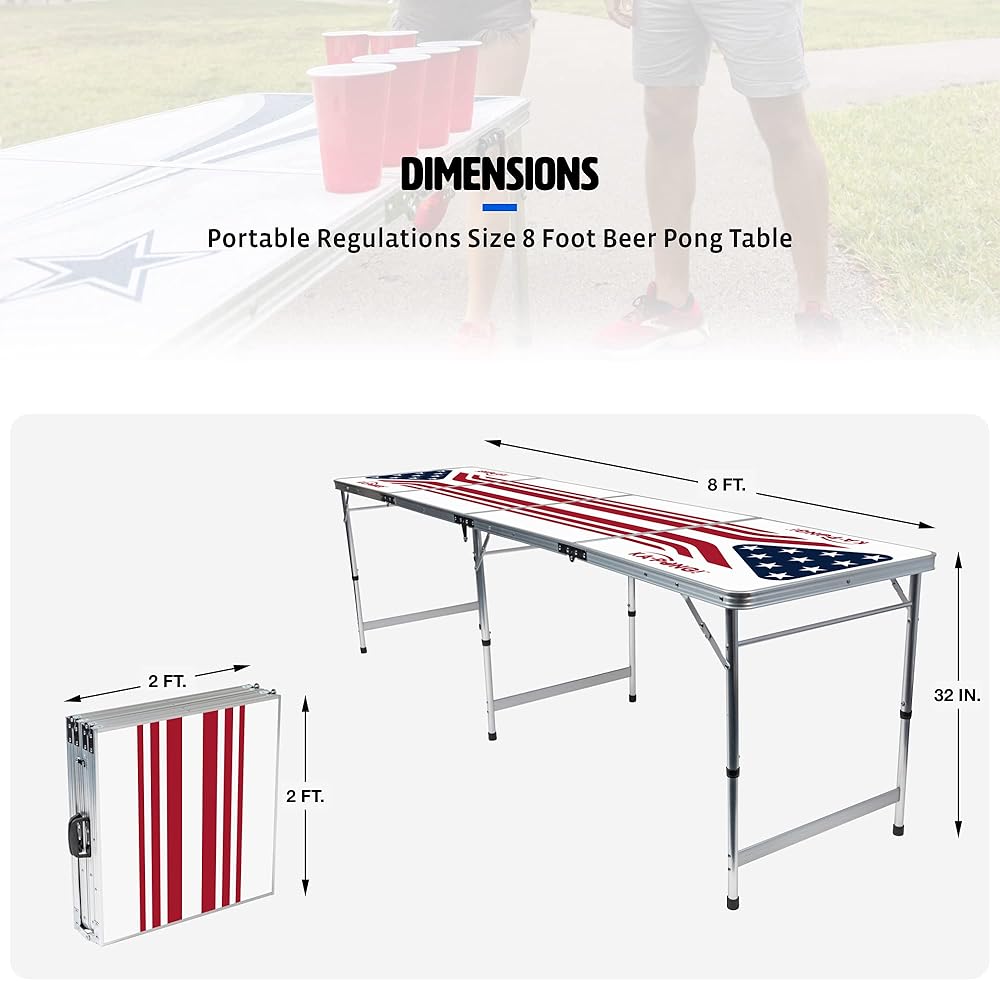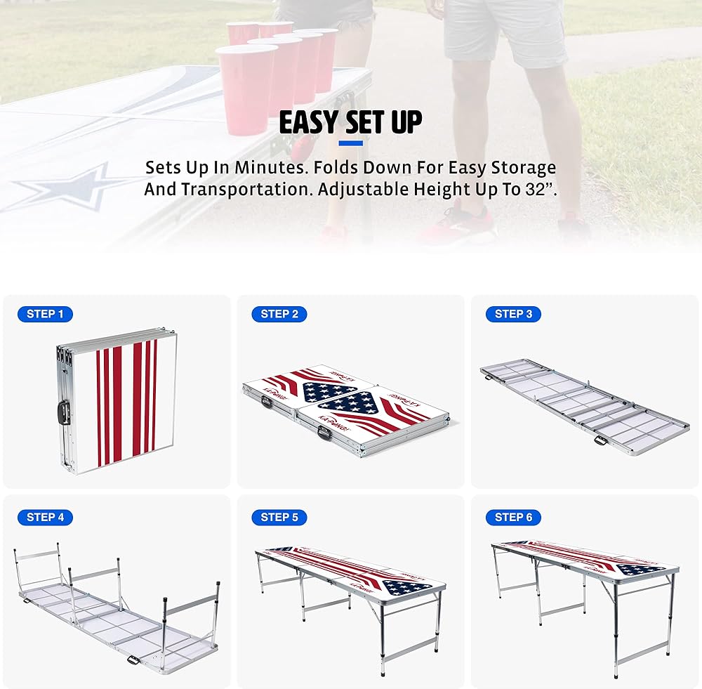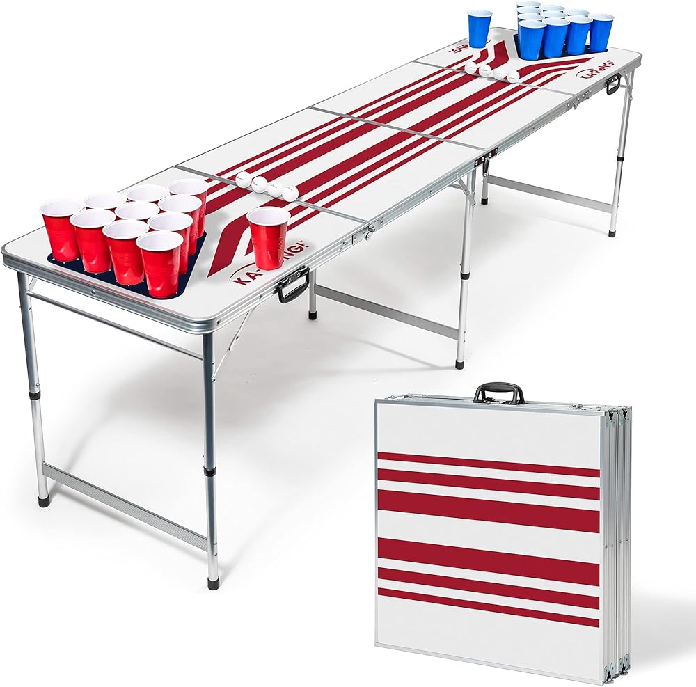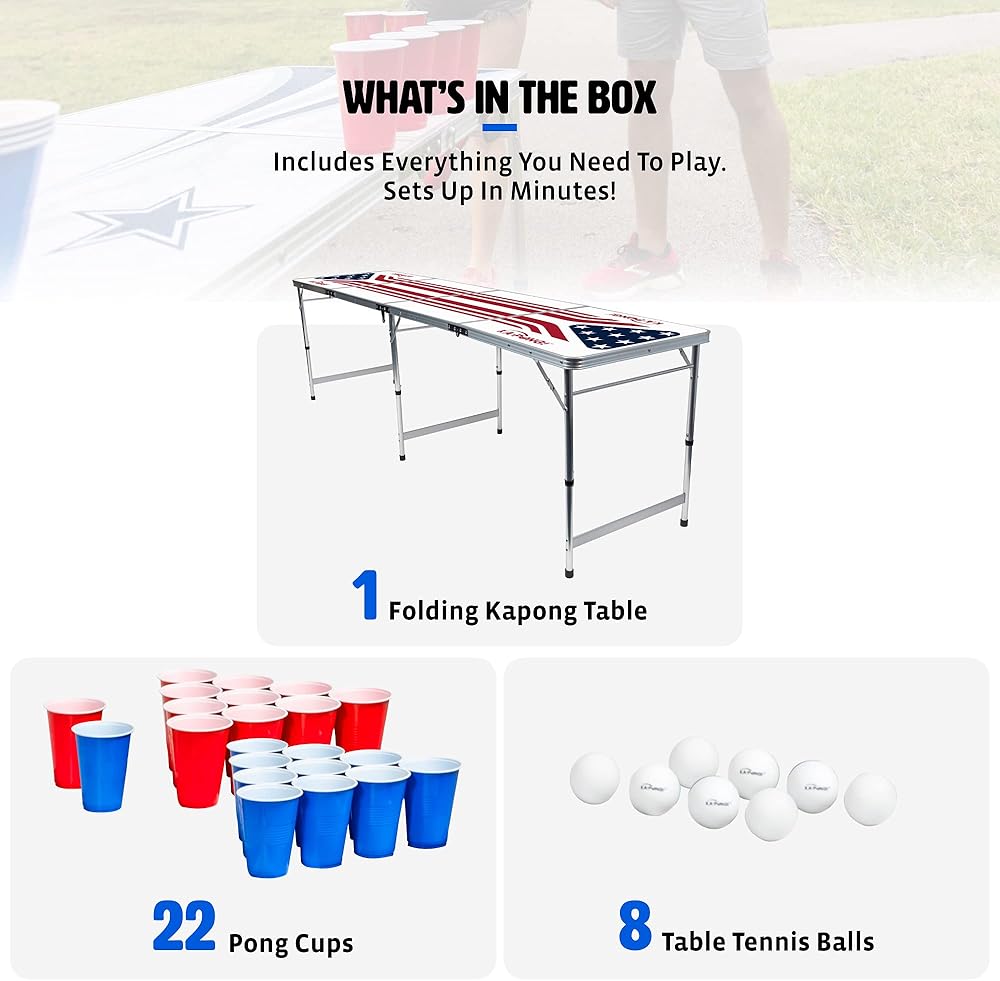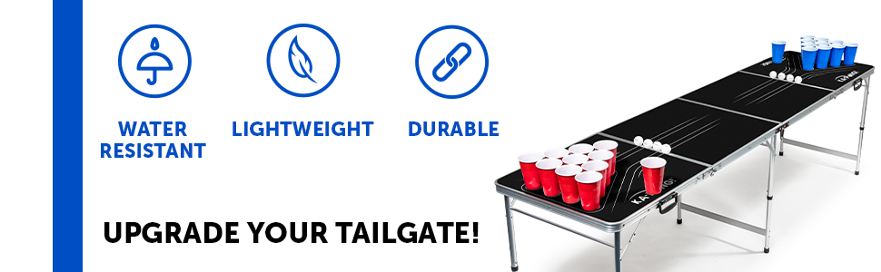 - أحضر الحفلة: طاولة Ka-Pong Tailgate خفيفة الوزن ولكنها متينة، ويمكن تعبئتها والسفر بسهولة، ويتم إعدادها في ثوانٍ معدودة، وهي الرفيق المثالي للحفلات!