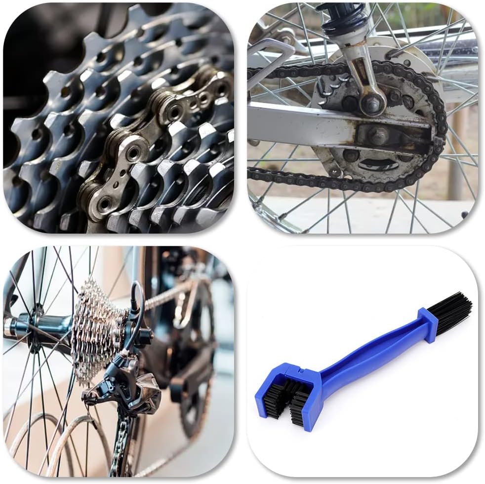 • 【Premium Material】This bike chain brush is made of high quality nylon and ABS material, which is sturdy, fastness. Can be cleaned with gasoline, diesel, detergent, water and special cleaning oil without chemical reaction.