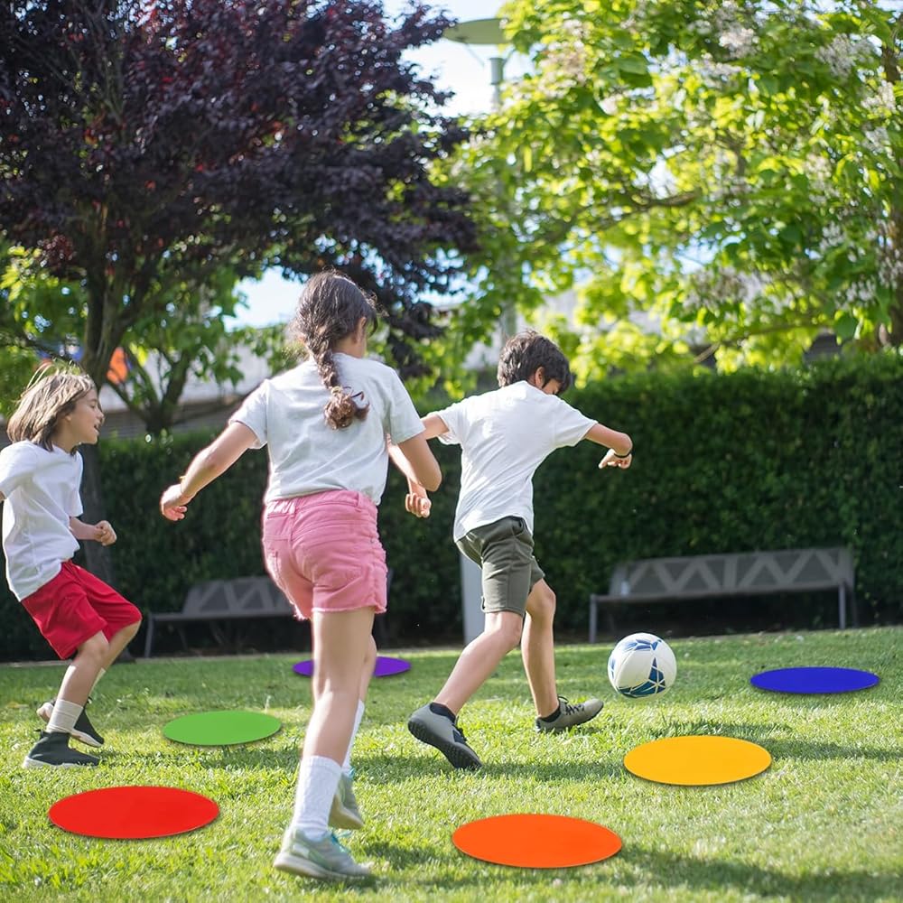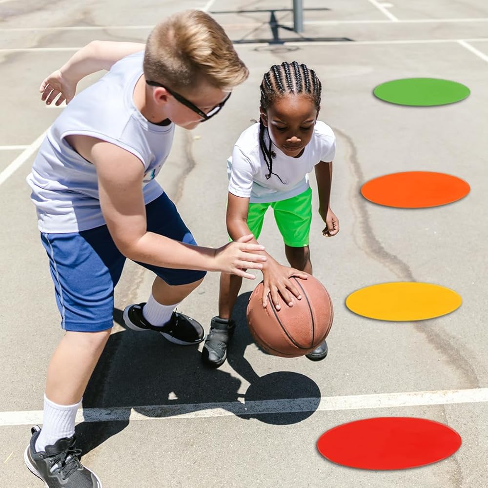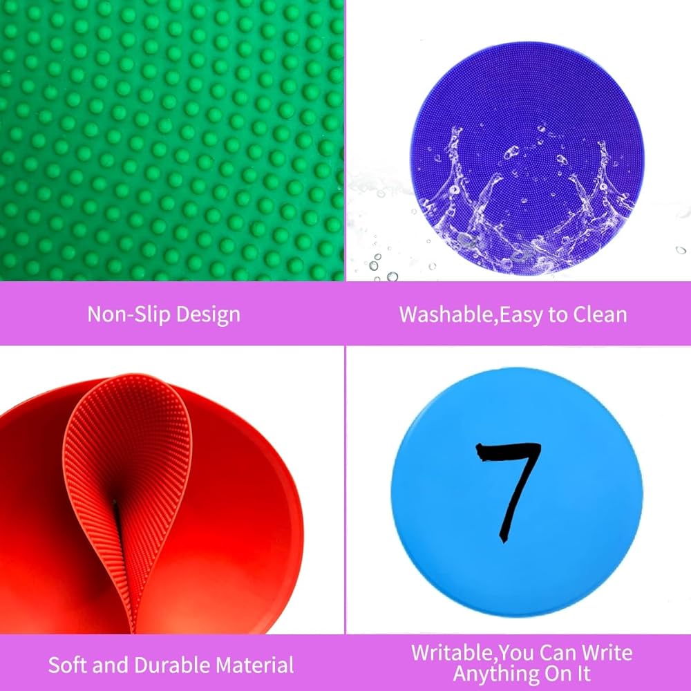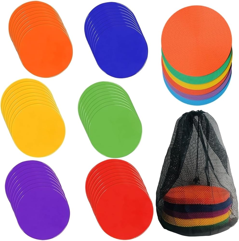 نقاط أرضية بولي فينيل نابضة بالحياة مكونة من 6 ألوان: تأتي نقاط الأرضية الرياضية هذه بستة ألوان زاهية - الأحمر والبرتقالي والأصفر والأخضر والأزرق والأرجواني. تجعل ألوانها الجذابة من السهل إنشاء دورات خفة الحركة المخصصة أو دروس الصالة الرياضية أو أي إجراءات تمرين أخرى ترغب فيها. سواء كنت تقوم بإعداد مسار عوائق، أو تحديد الحدود، أو استخدامها في التمارين الجماعية، فإن أقلام التحديد المنقطة هذه تسمح بترتيبات سريعة ومتعددة الاستخدامات.