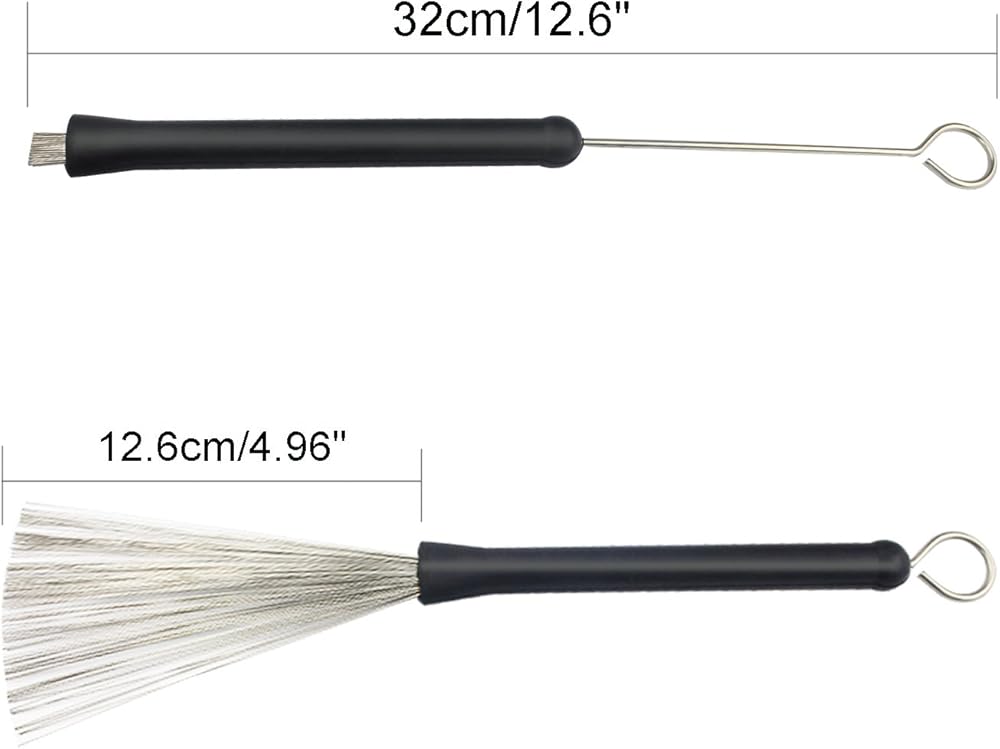 حجم فرش الطبل: تقريبًا. 12.6 بوصة في الطول؛ طول فرشاة السلك: تقريبًا. 4.7 بوصة. تأتي مع حقيبة برباط مخملي أسود، جيدة للتخزين والحمل