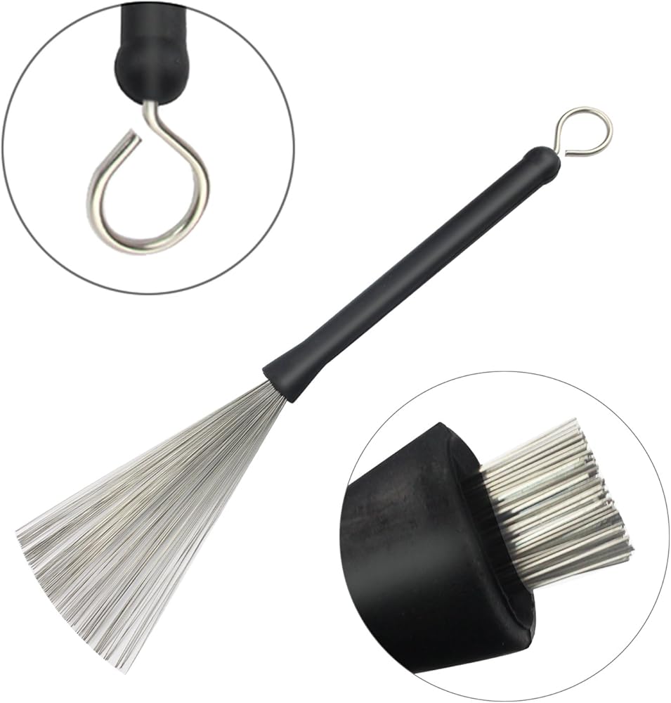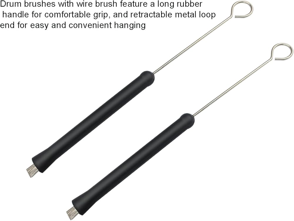 تتميز فرش الطبل المزودة بفرشاة سلكية بمقبض مطاطي طويل لقبضة مريحة، ونهاية حلقة معدنية قابلة للسحب لسهولة التعليق