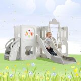 • Versatile 4-in-1 Design: Features a step ladder, smooth slide, swing set, and basketball hoop, offering a variety of activities to engage your child's physical and imaginative play.