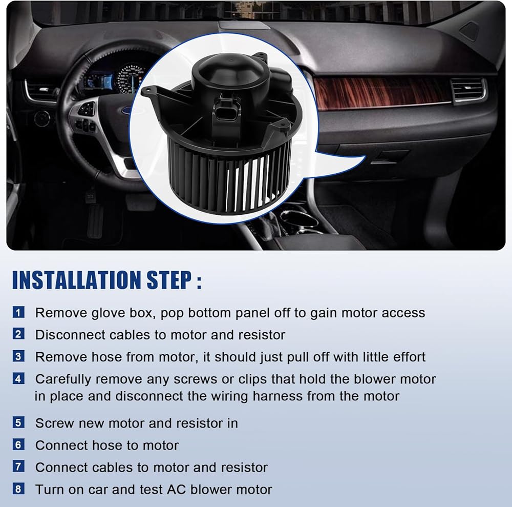 • [استبدال مروحة محرك منفاخ التيار المتردد]: استبدال مروحة محرك منفاخ التيار المتردد - محرك منفاخ سخان مكيف الهواء هو المروحة التي تحرك الهواء الساخن أو البارد من خلال فتحات لوحة القيادة بناءً على إعدادات نظام تكييف الهواء وسرعة المروحة المحددة. إذا كان نظام التدفئة والتهوية وتكييف الهواء (HVAC) الخاص بك يعاني من هذه المشكلات مثل ضعف تدفق الهواء أو عدم وجوده أو إصدار صرير عالٍ أو أصوات قعقعة، فأنت بحاجة إلى استبدال محرك منفاخ سيارتك.