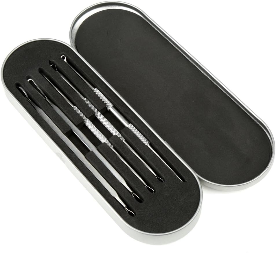 "أدوات إزالة الرؤوس السوداء المصنوعة من الستانلس ستيل من اتش اند اس لفرقعة حب الشباب - مجموعة أدوات استخراج البثور للبشرة الشفافة والناعمة - مجموعة إزالة الرؤوس السوداء للأنف والذقن والجبهة