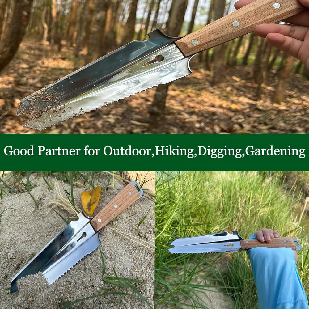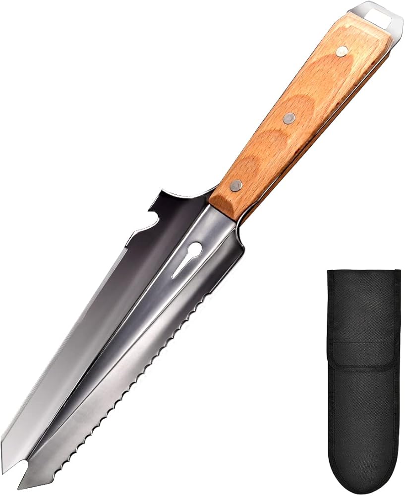 أداة سحب الأعشاب اليدوية من LWCUSNJ مجرفة البستنة، مقبض خشبي خفيف الوزن في الهواء الطلق وحقيبة الظهر للتخييم مجرفة محمولة متعددة الأدوات مع حقيبة حمل للحفر والبستنة والبقاء في الهواء الطلق