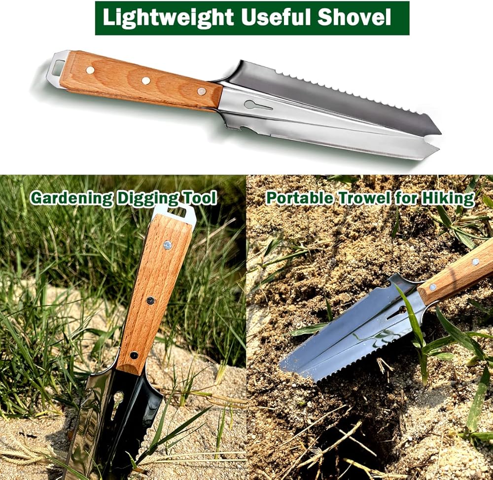 • 【أداة حفر البستنة】: مجرفة الحديقة قوية جدًا ومناسبة للأتربة الصلبة، ويوفر المقبض الخشبي قبضة مريحة، مما يزيد من قوة الدفع ويساعد على تخفيف الضغط على الذراعين واليدين. إنه مثالي لجميع مهام الحديقة الشائعة - زراعة النباتات، وحفر النباتات، والزراعة الضوئية، وزرع الشتلات في أواني أكبر أو تنظيف المنطقة المحيطة بأنابيب الري. يضمن تركيبها المكون من قطعة واحدة أن المقبض لن ينحني أو ينكسر.