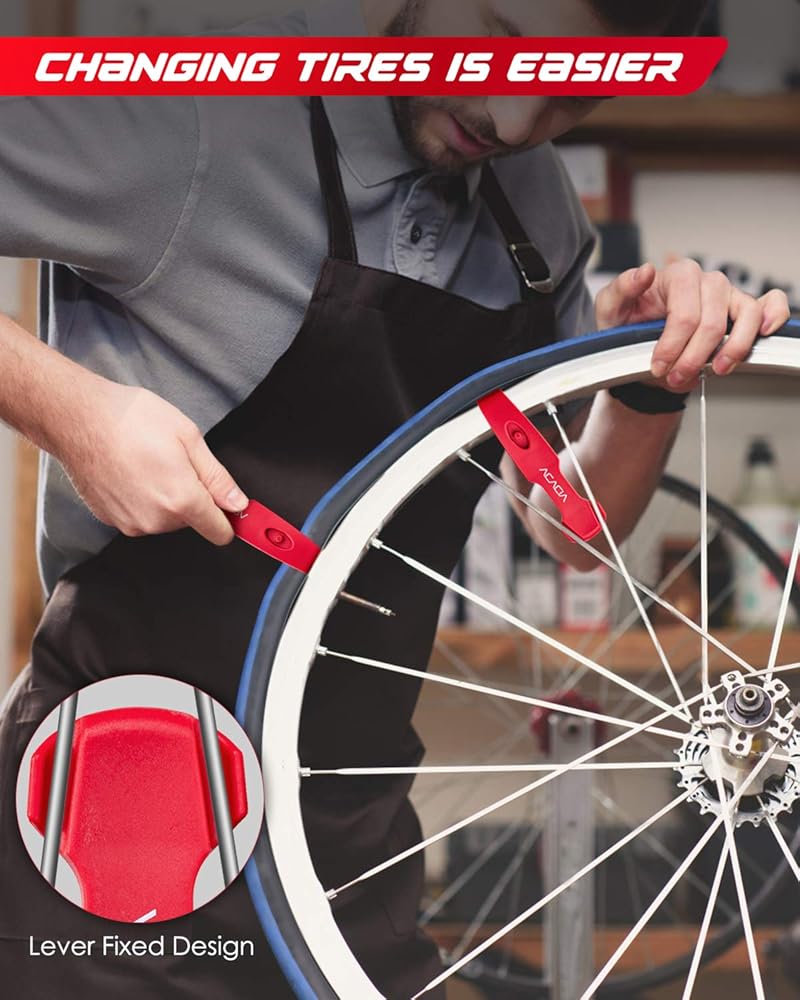تصميم ذكي: أدوات إصلاح الإطارات مصممة هندسيًا من أجل مقبض مريح ورافعة إطارات الدراجة الخاصة بنا مع جهاز تفريغ الأنبوب الداخلي شريدر وبريستا. يتم تركيب الرافعات معًا للتخزين المريح في مجموعة أدوات إصلاح إطارات الدراجة الخاصة بك.