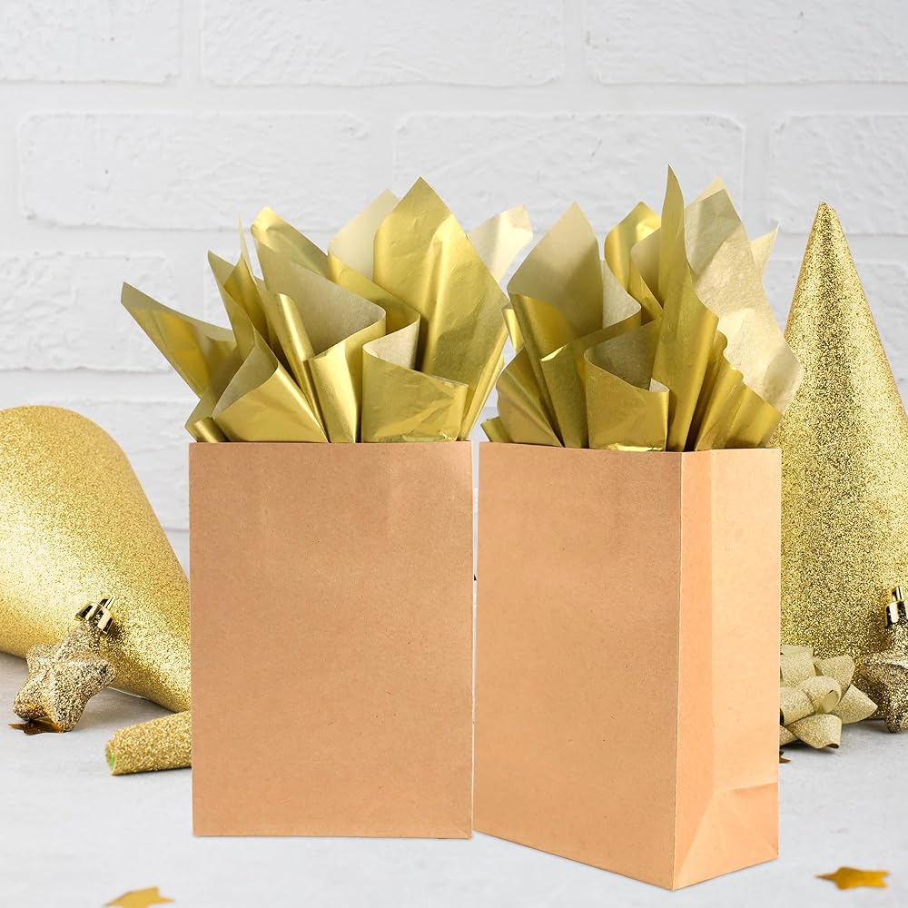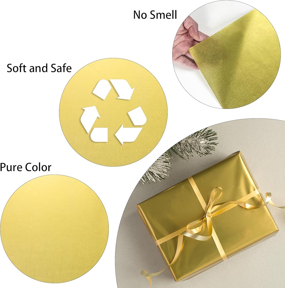 جودة عالية: ورق المناديل الورقية الذهبي المعدني الخاص بنا هو ورق عالي الجودة، كل ورقة من المناديل الورقية تزن حوالي 17 جرام، ناعمة وأنيقة، سهلة القطع والشكل، مما يضيف لمسة لطيفة إلى هداياك.