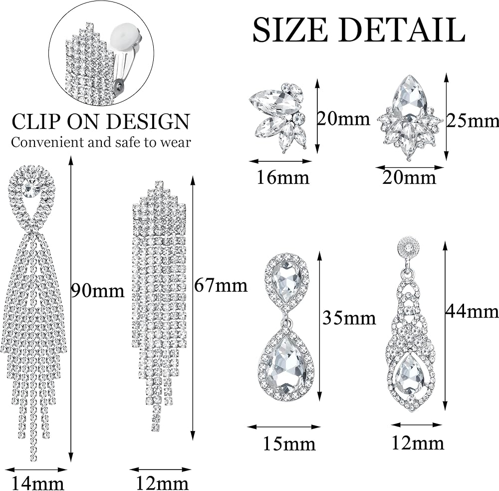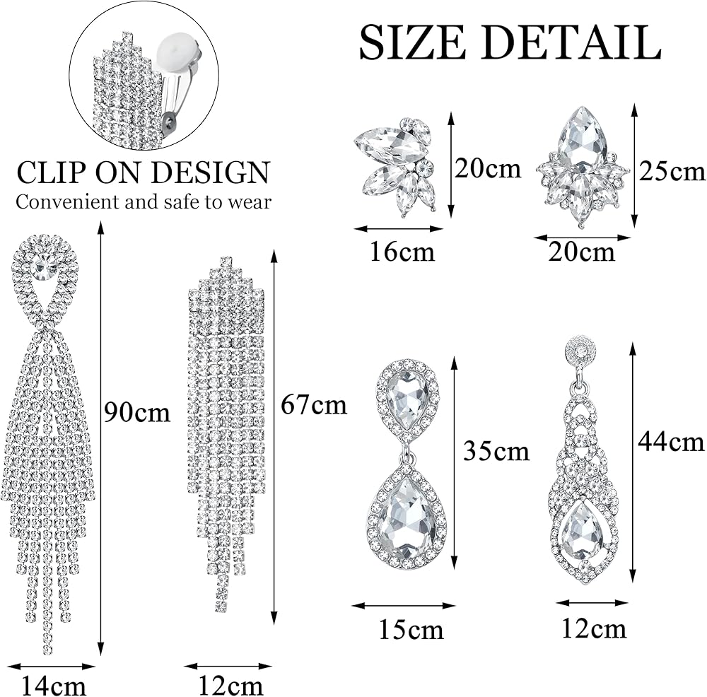 • 【تصميم مشبك على الأقراط】تتميز هذه الأقراط المتدلية بتصميم أقراط مشبكة مثالي للنساء بدون آذان مثقوبة، مما يجعلها سهلة الارتداء ورائعة بنفس القدر للمناسبات غير الرسمية أو الرسمية، مثل حفلات الزفاف، والحفلات الراقصة، والاحتفالات، إلخ. أحجام مختلفة من الأقراط الفضية مناسبة لمعظم الناس. من السهل مطابقة الملابس المختلفة والحصول على الإطراء.
