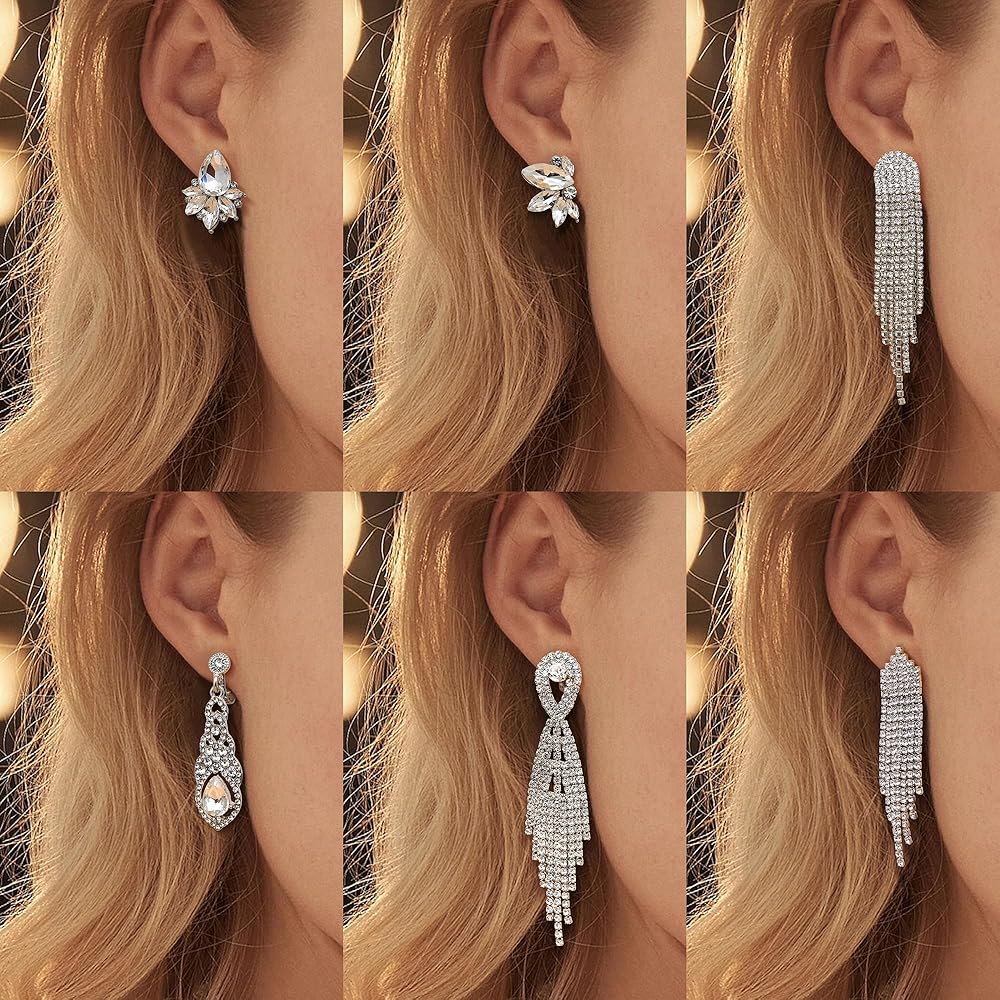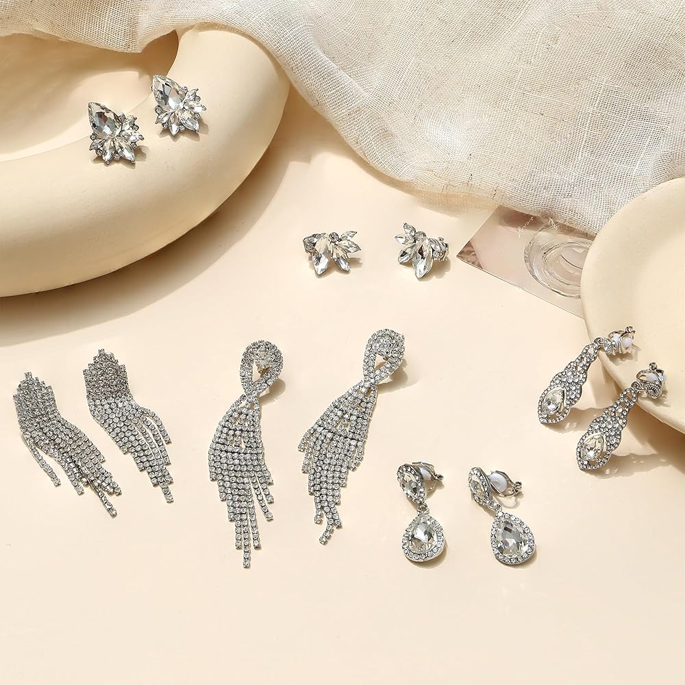 • 【مجموعة أقراط بمشبك】6 أزواج من أقراط أنيقة للعرائس ووصيفات العروس في العبوة، تتضمن مشبك على شكل دمعة على الأقراط، وأقراط متدلية على شكل مجموعة كريستال، وأقراط بمشبك على شكل شرابة من حجر الراين، وأقراط متدلية بمشبك ثريا، إلخ. أظهر سحرك من خلال الارتداء هذه الأقراط الأنيقة غير المثقوبة، تجعلك أكثر جاذبية بين الناس.