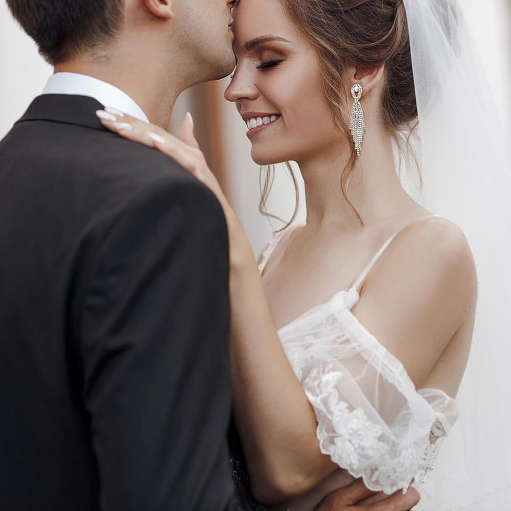 • 【آمنة وخفيفة الوزن】مجموعة أقراط الزفاف مصنوعة من معدن خفيف الوزن وآمن، ومرصعة بأحجار الراين اللامعة عالية الجودة، أنيقة ولامعة، يمكن أن تظهر سحرك بالكامل. يأتي كل مشبك على الأقراط مع وسادات مطاطية لحماية أذنيك. يمكنك ارتداء هذه الأقراط المتدلية من حجر الراين بشكل مريح طوال اليوم.