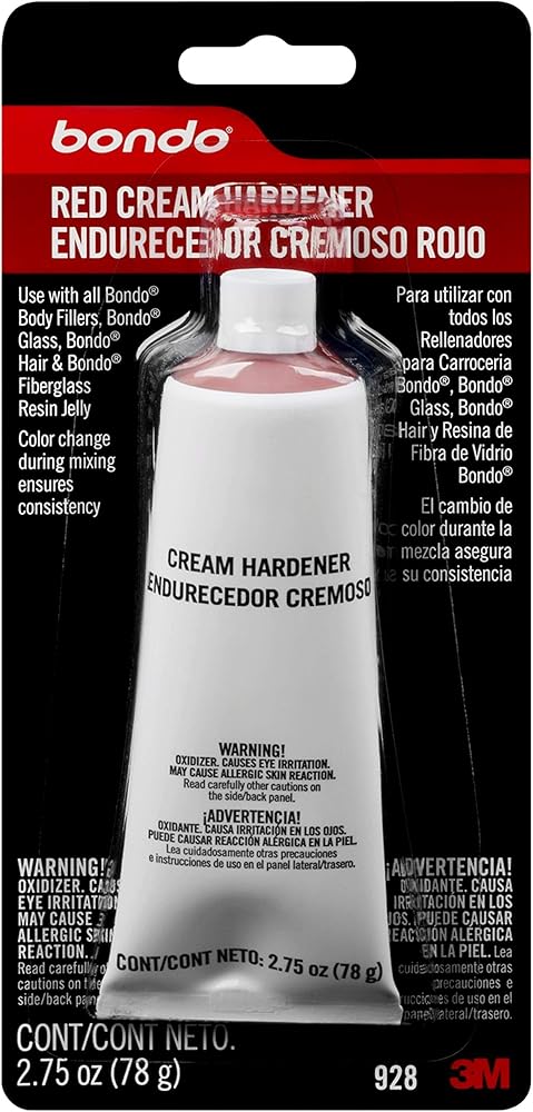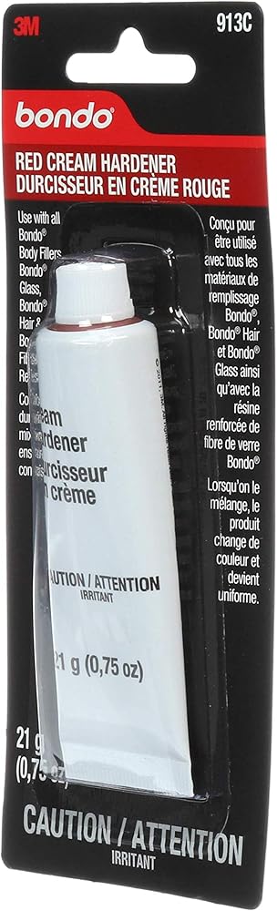 Bondo Red Cream Hardener is easy to use by simply mixing with Bondo Fillers.