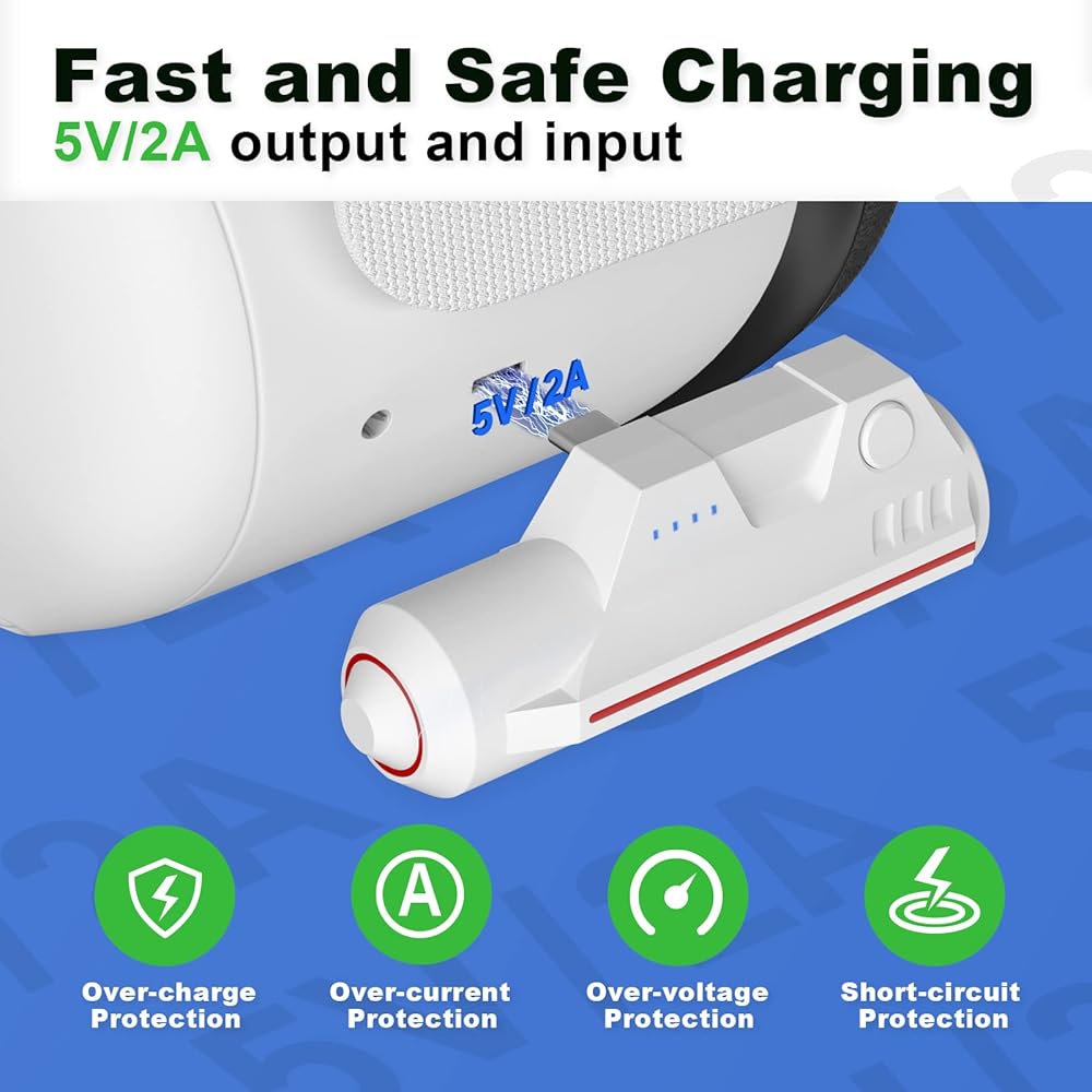Safe and Fast Charging: The extended battery pack offers 5V/2A input and output, which is the same as the official Quest 2 charger. It has also passed safety certification for over-charge, over-current, over-voltage, and short-circuit protection