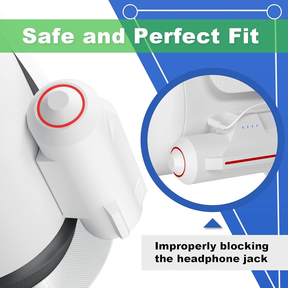 Free Audio Jack: Free Audio Jack: Our non-adapter design allows for charging without blocking the audio jack. The inner face is arc-shaped, fitting the Quest 2 perfectly, stabilizing the connection, and ensuring long-term use