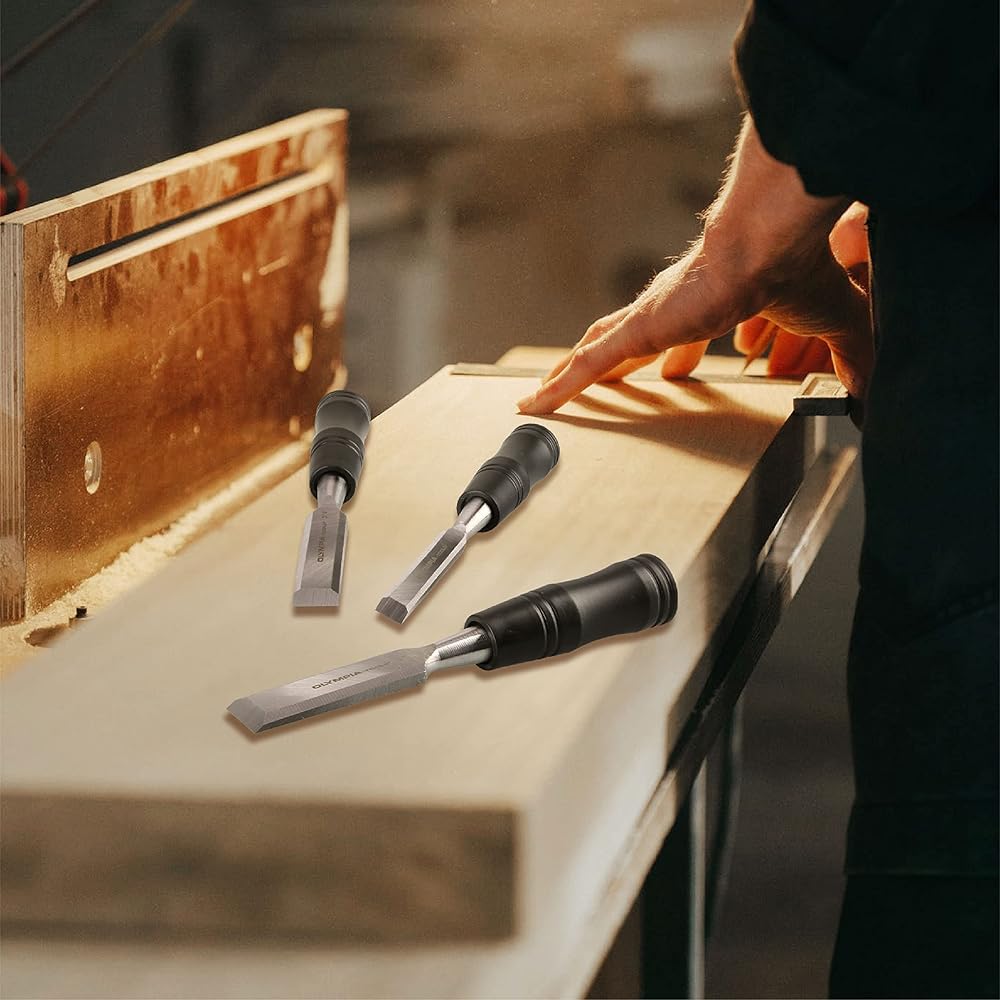 WOOD CHISEL SET: Enjoy all sorts of woodwork projects with this chisel set, featuring 4 long pattern blades made of hardened & tempered drop forged alloy steel with edge protector caps.
