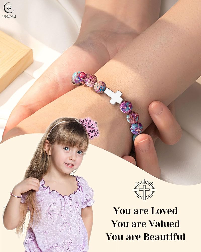 【سوار للفتيات】-- يجسد الصليب الإيمان والفداء والحب الأبدي. هذا السوار مرصع بأحجار ذات ألوان زاهية، وهو عصري بين الفتيات - الهدية المثالية لابنتك/حفيدتك/ابنة أختك/الفتيات الأخريات من حولك.
