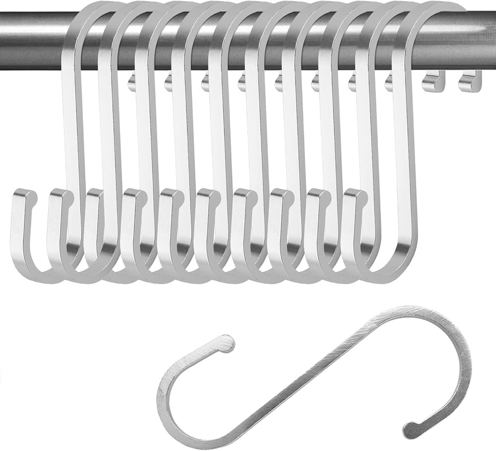 WELL ORGANIZED - These aluminum s hooks provide a practical solution for neatly organizing everything in your kitchen by simply hanging your pots, pans, spatulas, cups and other kitchen utensils. Or used as pant hooks.