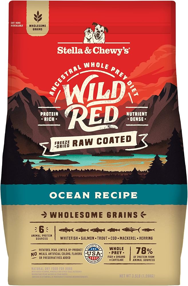 Stella & Chewy's Wild Red Dry Dog Food الخام المغلفة بنسبة عالية من البروتين والحبوب الصحية وصفة المحيط، 3.5 رطل.
