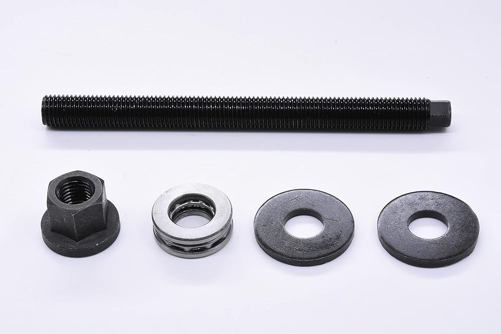 The package includes: 1 X threaded rod, 1 X thrust bearing, 1 X heightening nut, 2 X washer