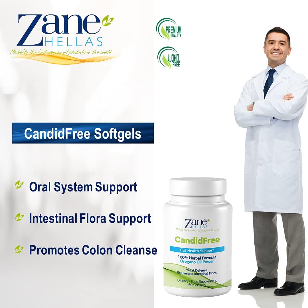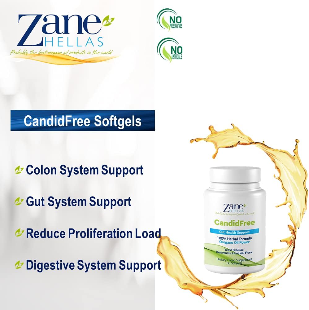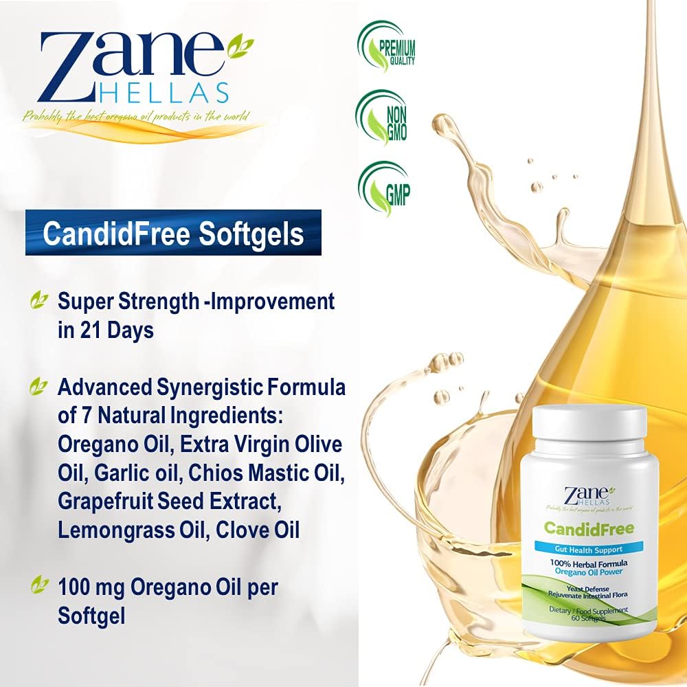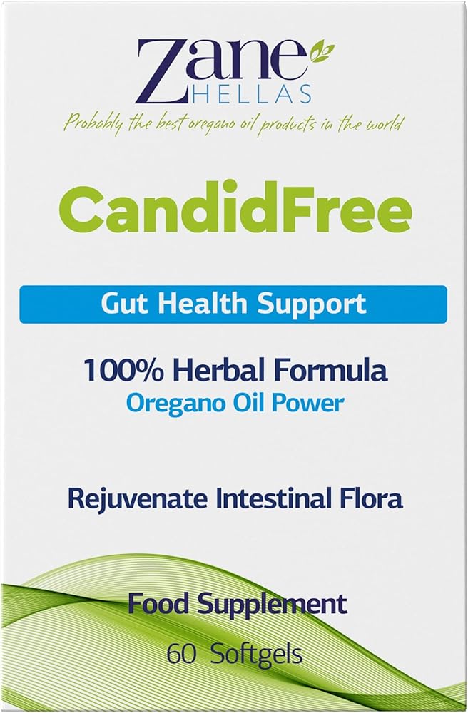 ZANE HELLAS CANDIDFREE SOFTGELSA مزيج من زيت الأوريجانو الفائق و6 مكونات عشبية أخرى - تعمل بشكل تآزري لمساعدة النباتات على التوازن والصحة المعوية.
