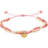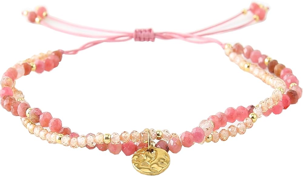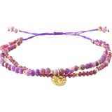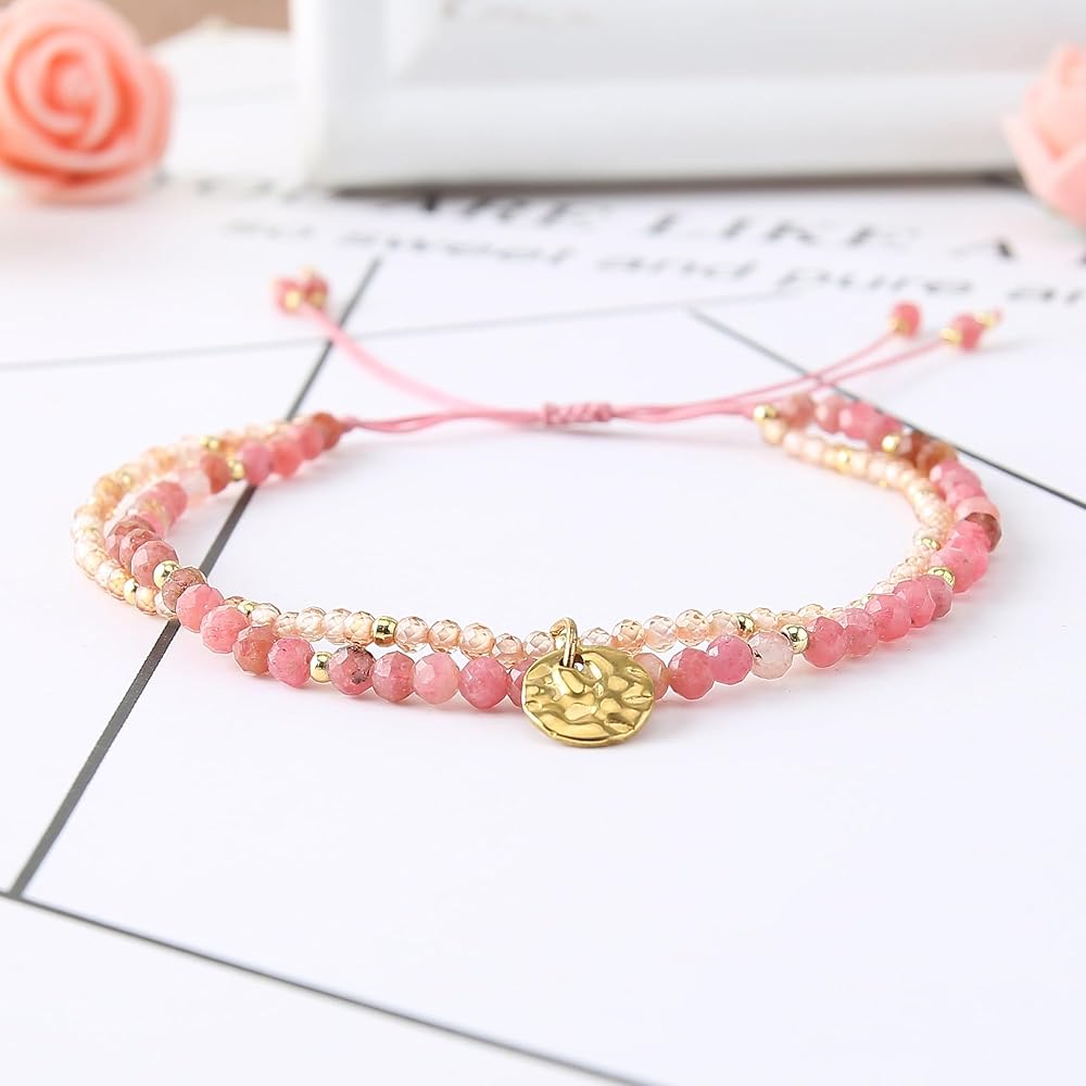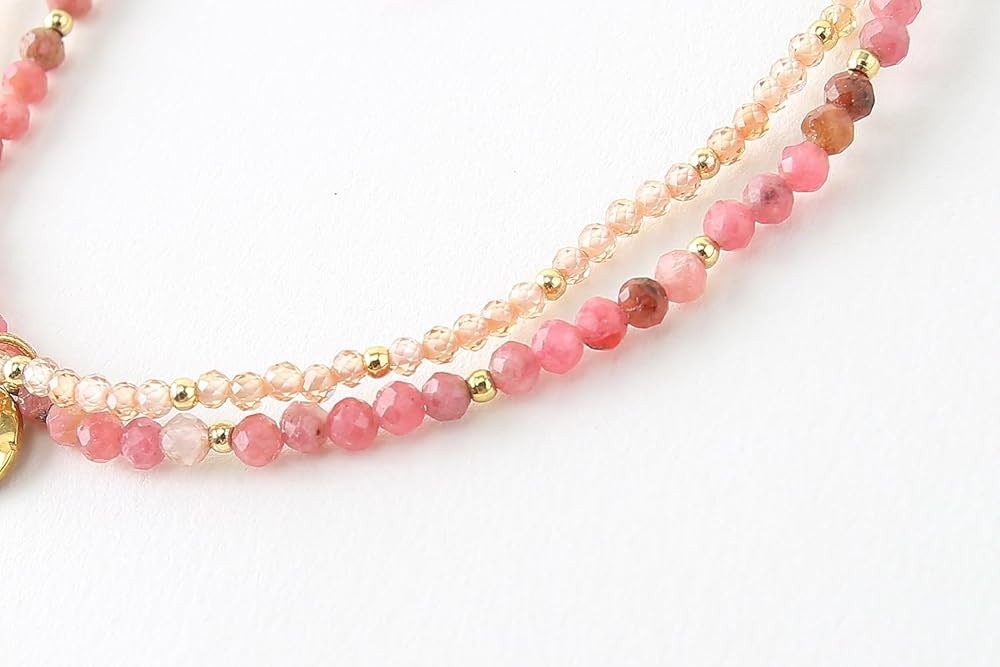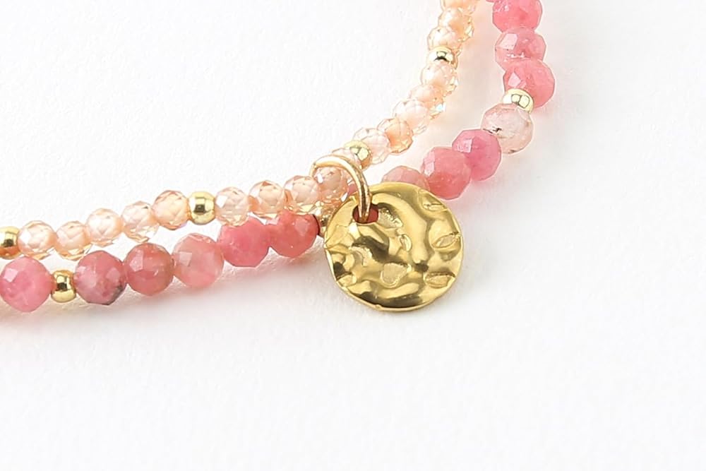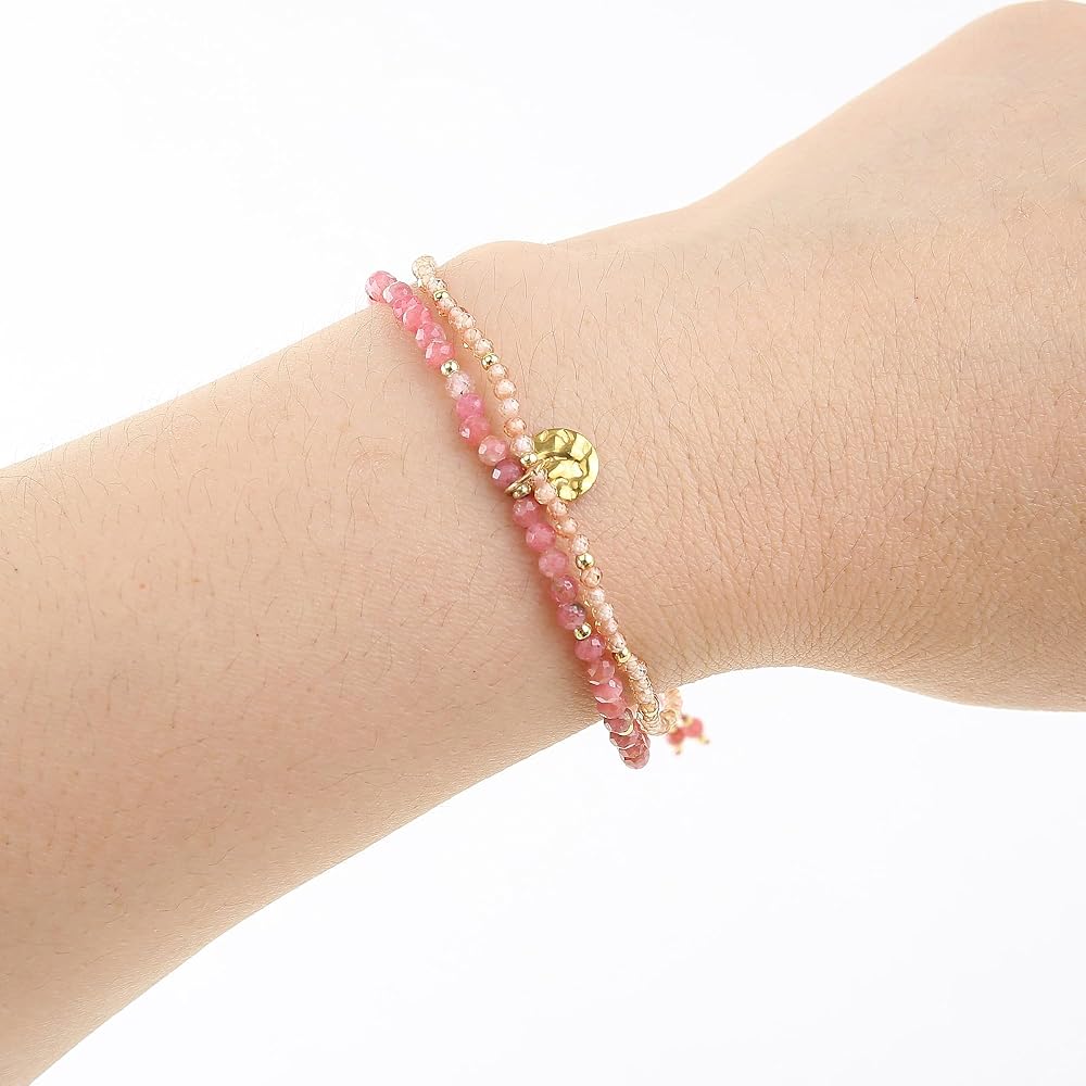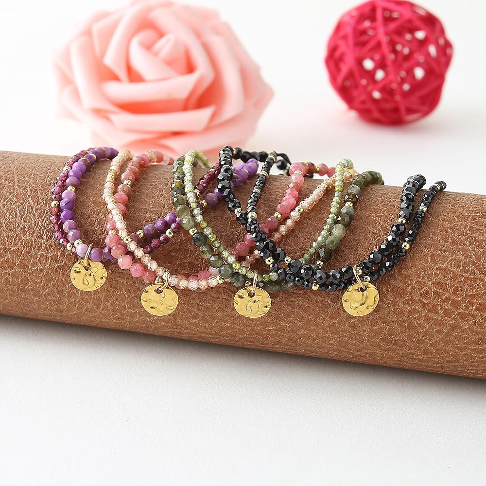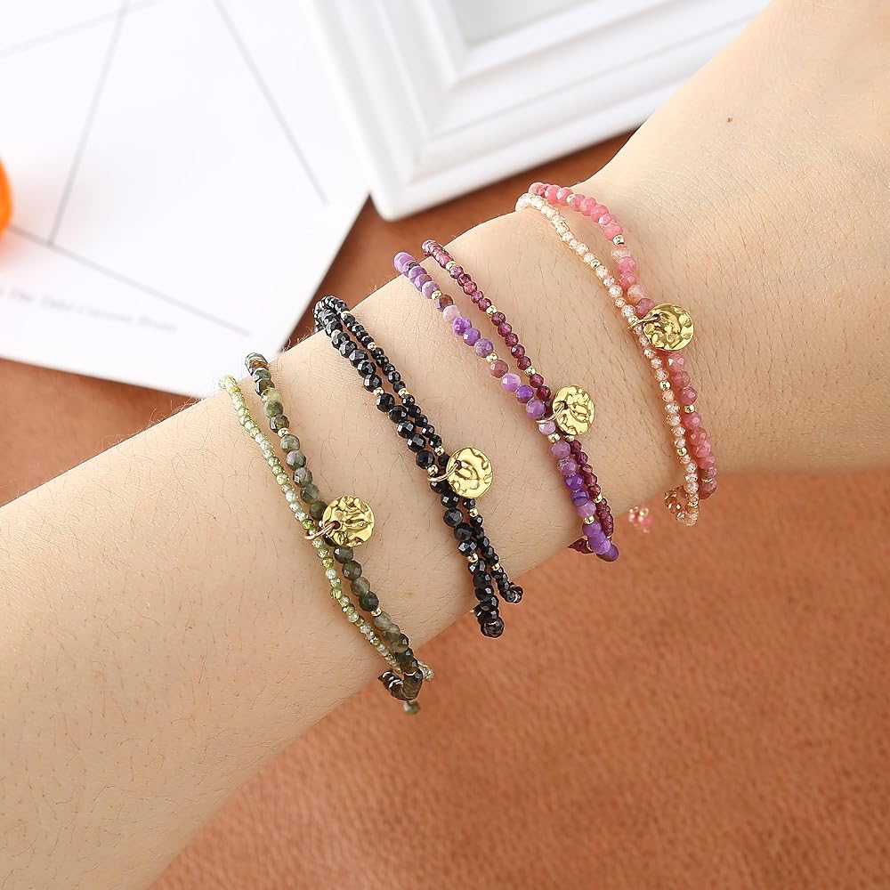 تصميم مزدوج الطبقات: يتميز هذا السوار ببنية فريدة من نوعها مزدوجة الطبقات، مع طبقة واحدة تتميز بأحجار الميكا الأرجوانية مقاس 3 مم والطبقة الأخرى مزينة بأحجار مقاس 2 مم، مما يخلق مظهرًا ديناميكيًا وجذابًا بصريًا.