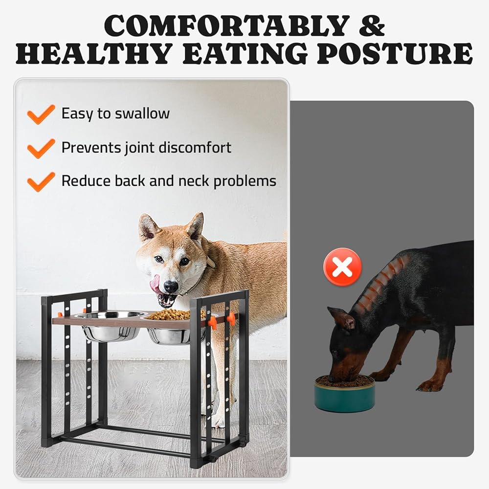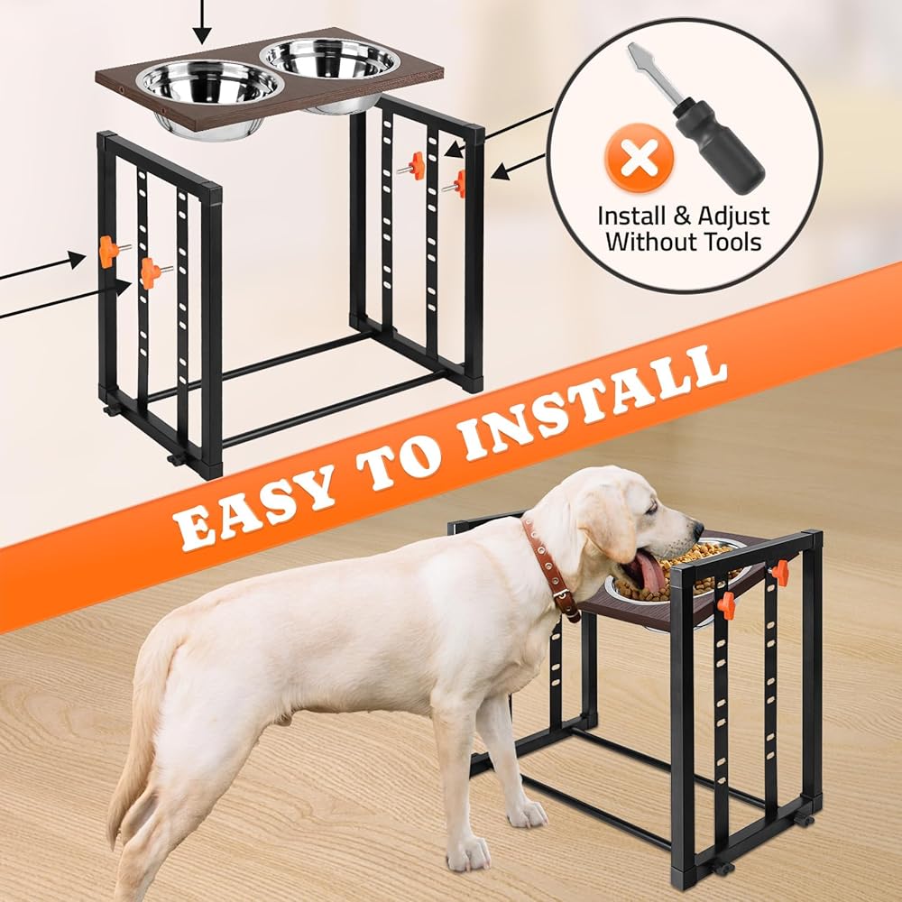 • 🐾تجميع بدون أدوات: حامل أوعية الكلاب الطويلة سهل التركيب للغاية بدون أي أدوات براغي، اختر الارتفاع والزاوية المناسبة وفقًا لطول كلبك.