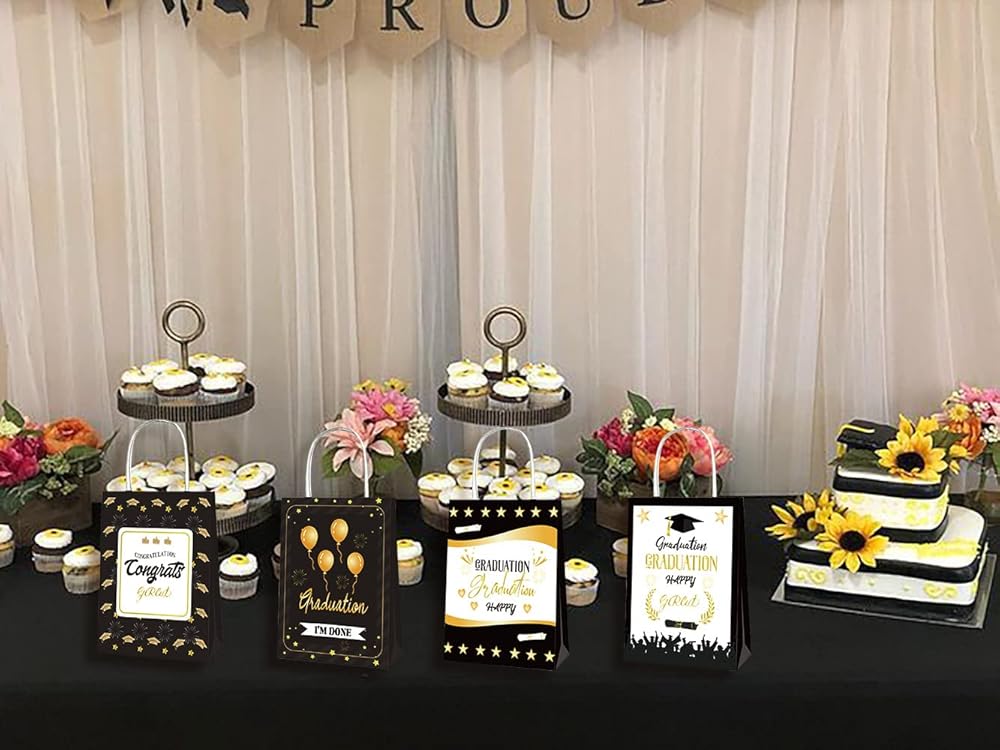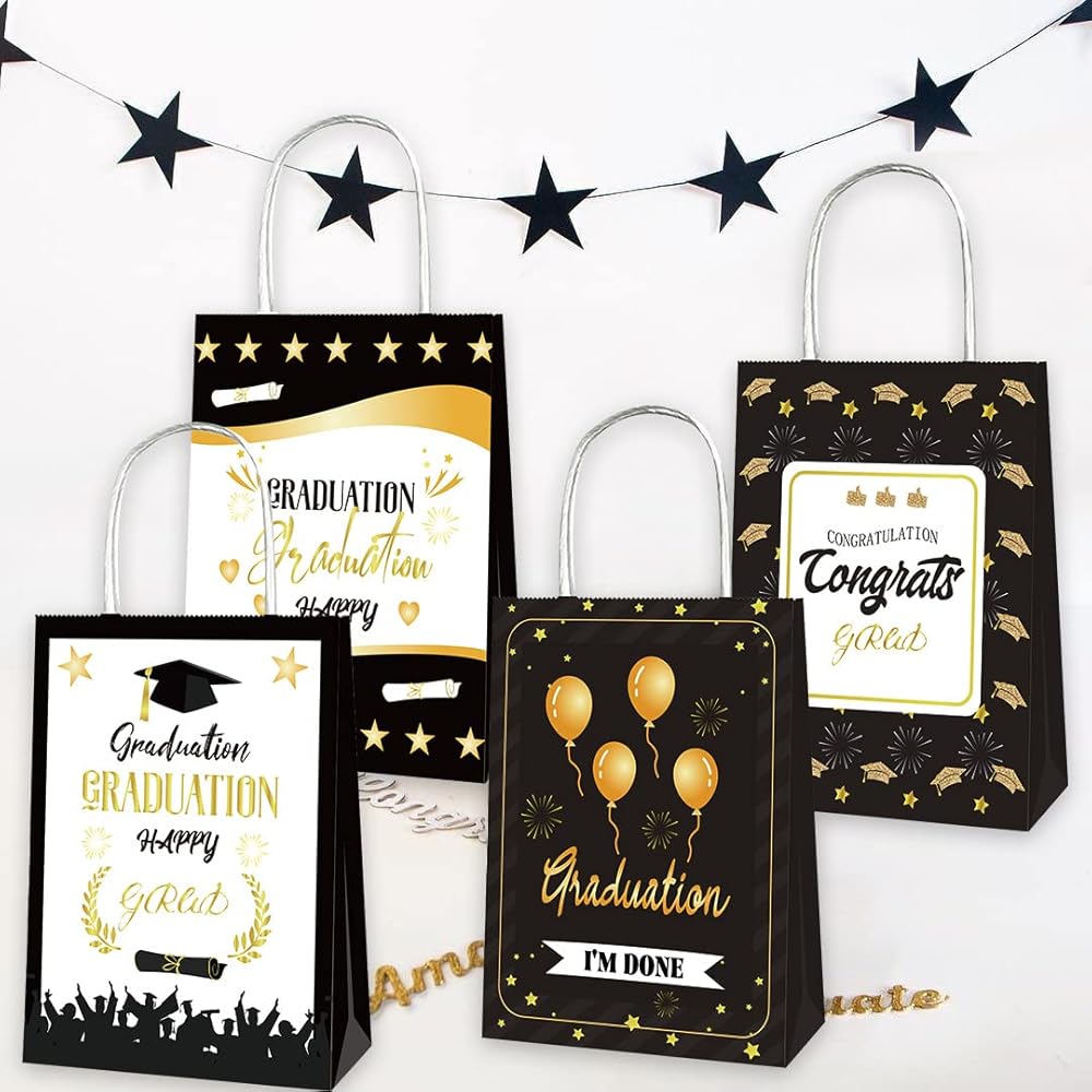 • 「Graduation Gift Bags Include」: Each graduation favor bags set includes 12 packs of treat bags. Each bag measures 6.29 inches long, 3.14 inches wide, and 8.26 inches high. There are different graduation season patterns on both sides of the graduation treat bag. There are 4 patterns in total, enough to show the diversity of graduation paper bags and enrich your graduation gift packaging needs.