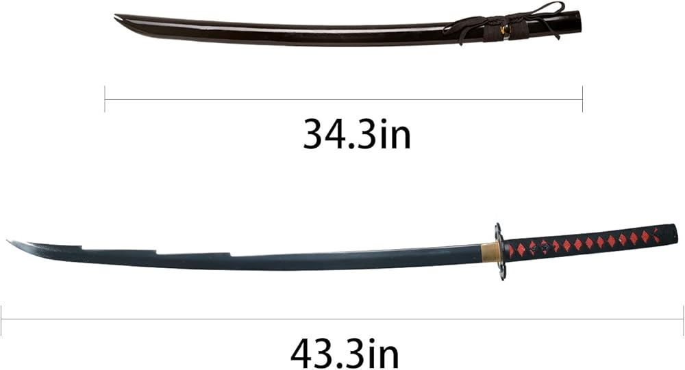 • 2. The total length of the knife is about 43.3 inches, the handle is about 10.8 inches, and the sheath is about 34.3 inches.