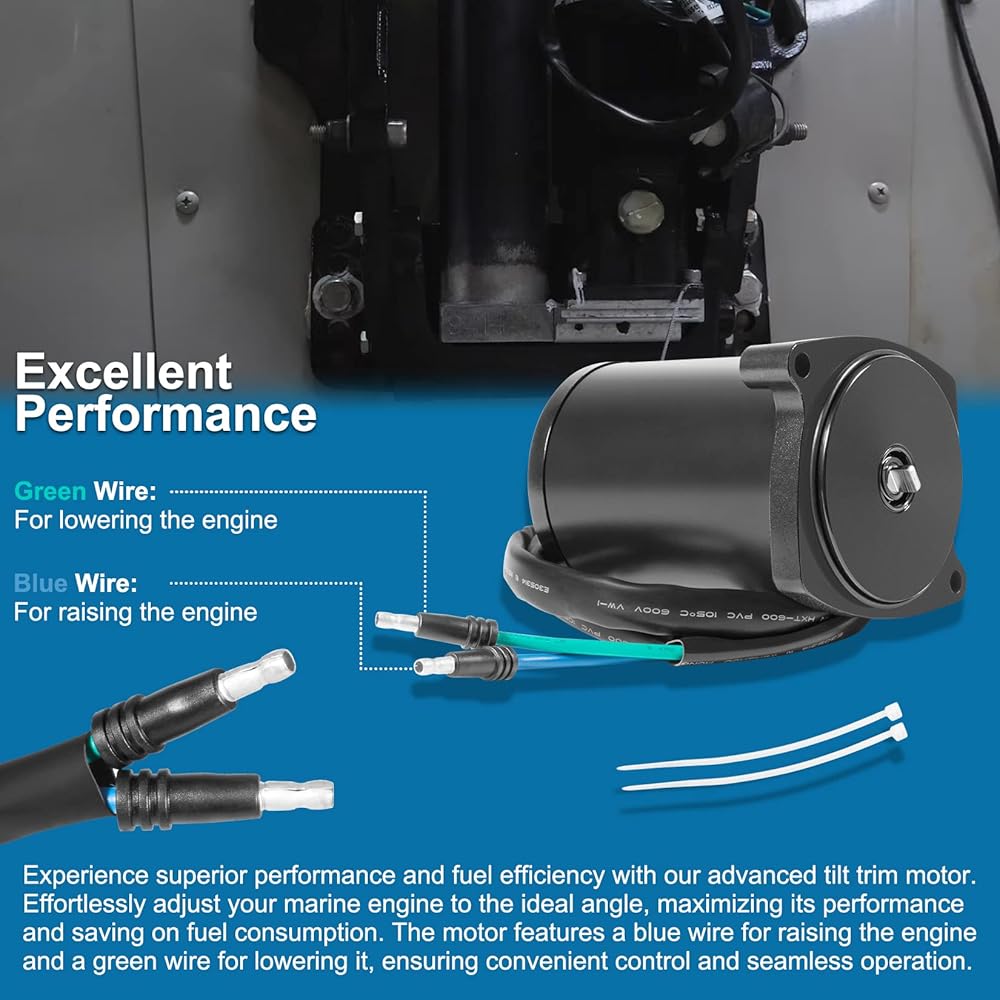 Excellent Performance - Experience superior performance and fuel efficiency with our advanced tilt trim motor. Effortlessly adjust your marine engine to the ideal angle, maximizing its performance and saving on fuel consumption. The motor features a blue wire for raising the engine and a green wire for lowering it, ensuring convenient control and seamless operation.