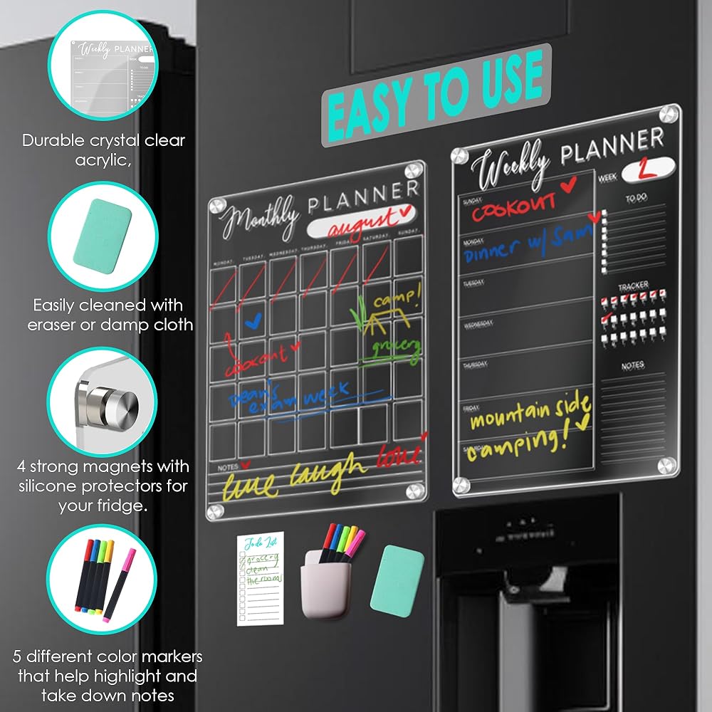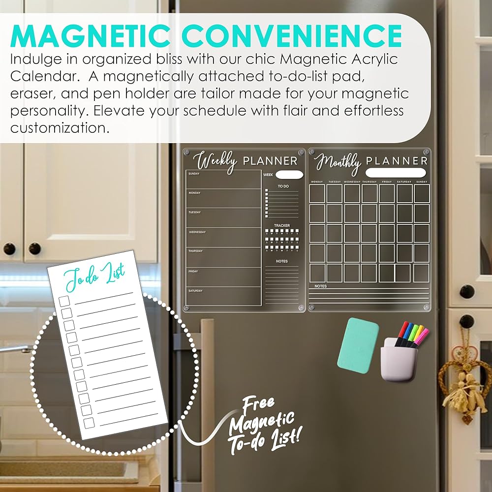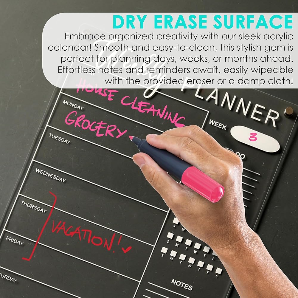 📅 STAY ON TRACK & DAILY HABIT TRACKING: Elevate your organization with our Acrylic Magnetic Calendar – your versatile ally for managing appointments, tasks, and important dates effortlessly. Whether used as a weekly whiteboard, monthly planner, or family organizer, this stylish addition ensures you stay on top of your schedule. Transform your routine with integrated daily habit tracking, allowing you to monitor progress, set goals, and cultivate positive habits effortlessly. Stay organized and in control with one powerful tool!