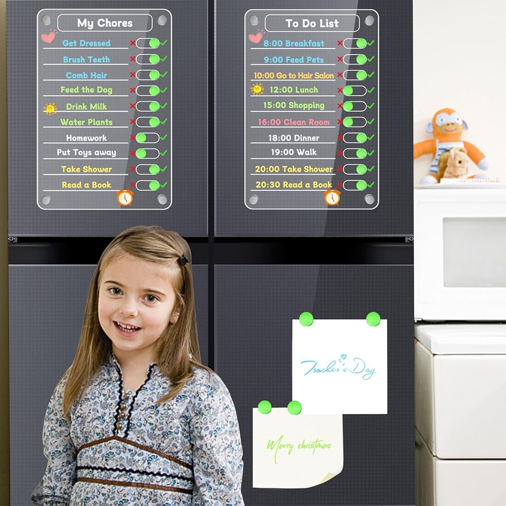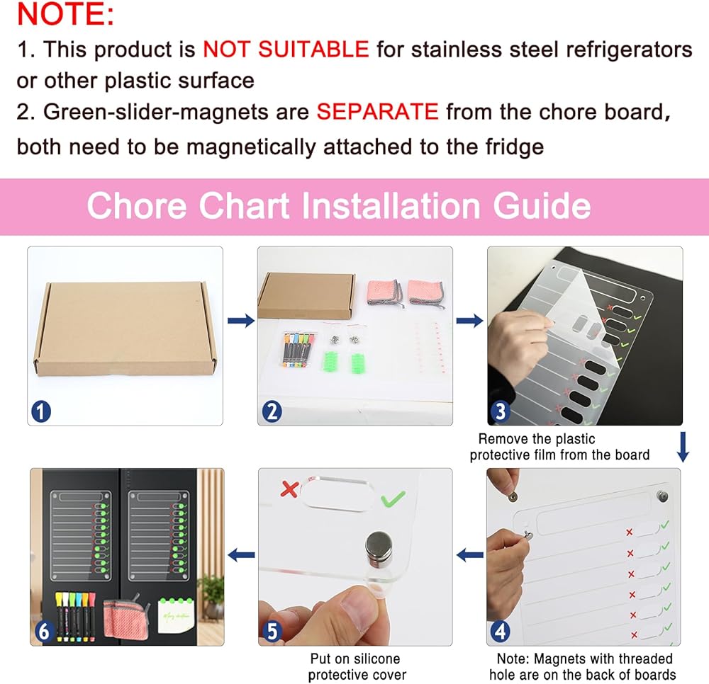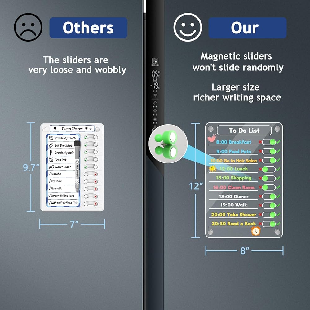 【تفاعلي وسهل الاستخدام】 يحتوي مخطط المهام الروتينية للمسح الجاف للأطفال البالغين على 10 أزرار مغناطيسية قابلة للانزلاق. يمكن شفطه في الثلاجة، مما يوفر مسؤولية تشغيل تفاعلية للأطفال. يمكن وضع علامة على كل مهمة مكتملة بالأزرار لإبقاء الأطفال مستمتعين ومحفزين