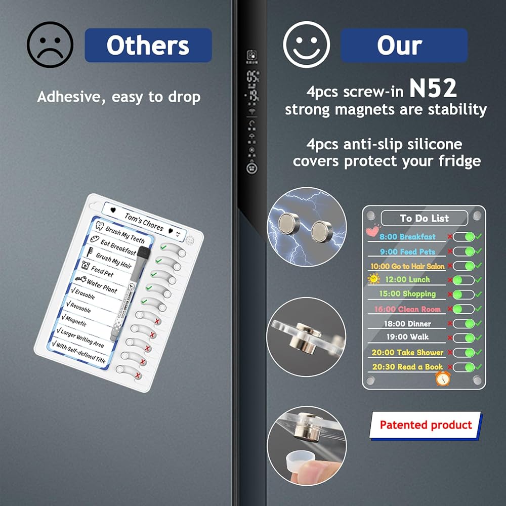 【تصميم مغناطيسي أقوى】4 مغناطيسات سميكة تجعل المخطط الروتيني لسلوك الأطفال الصغار ممغنطًا بقوة على معظم الثلاجات أو الأسطح المعدنية. 4 أغطية سيليكون مضادة للانزلاق تحمي سطح الثلاجة جيدًا من الخدوش