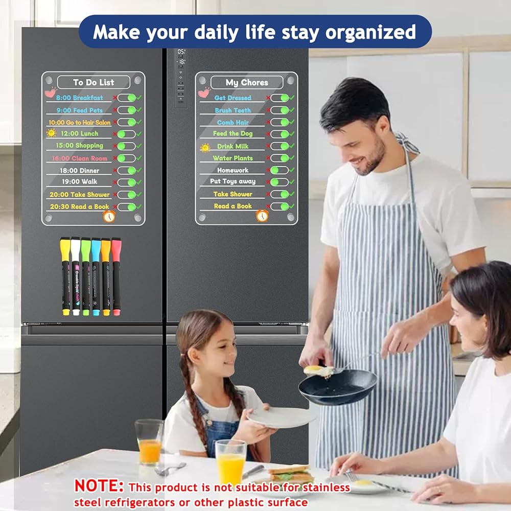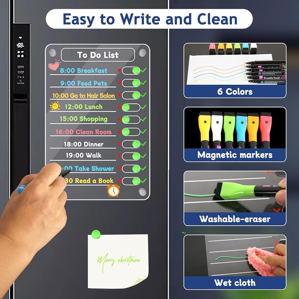 【سهل الكتابة والتنظيف】سطح لوح الأكريليك الشفاف مقاوم للأوساخ ويمكن قراءته بوضوح باستخدام الأقلام الملونة. يمكن مسح الكتابة اليدوية بسهولة باستخدام الممحاة القابلة للغسل الموجودة على القلم أو قطعة قماش مبللة