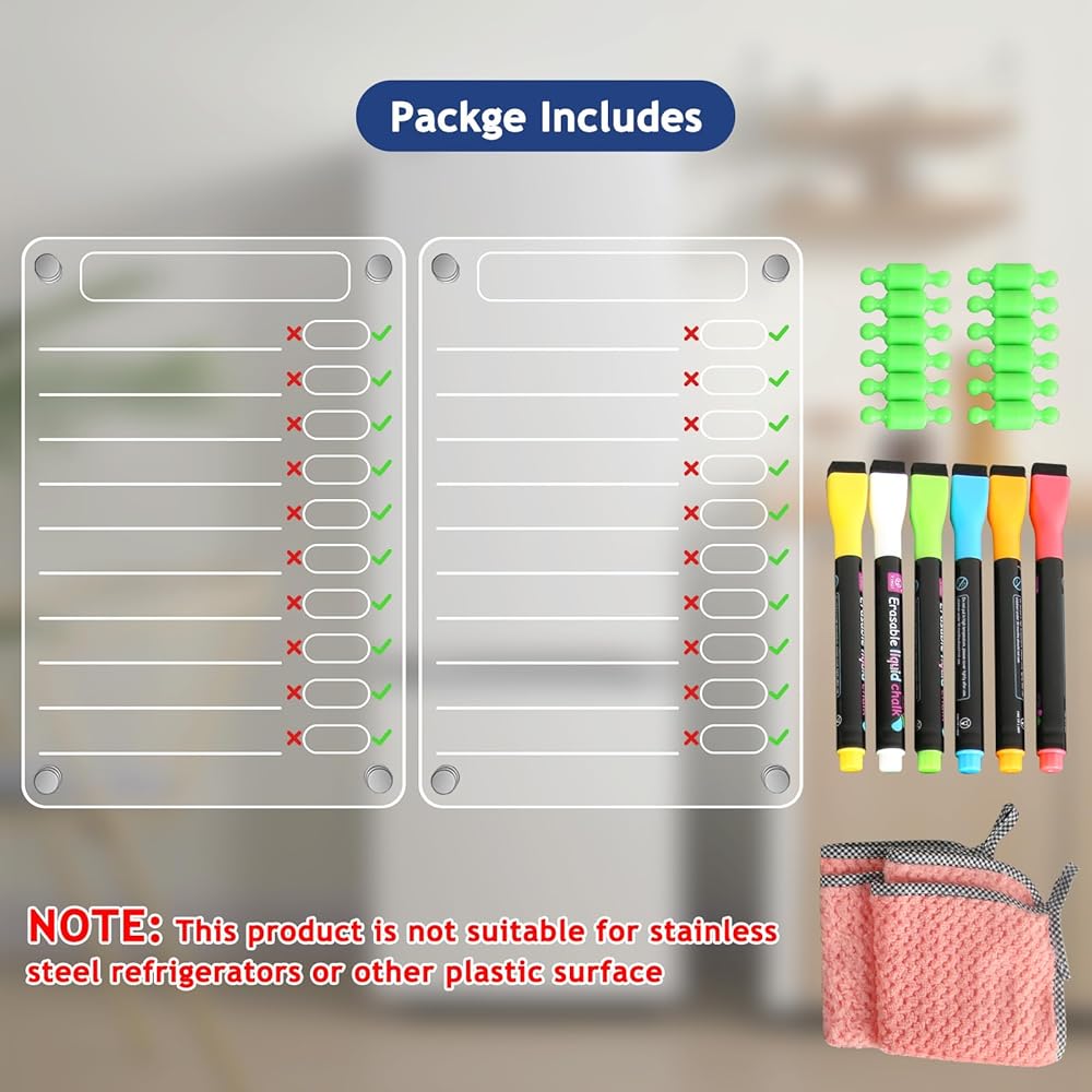 【ما تحصل عليه】 عبوتان من لوح مغناطيسي أكريليك شفاف مقاس 8 × 12 بوصة مع 8 مغناطيسات سميكة و8 أغطية سيليكون، و6 علامات مغناطيسية ملونة، و24 كتلة مغناطيسية قابلة للانزلاق، و2 قطعة قماش للتنظيف. ملاحظة: هذا المنتج غير مناسب للثلاجات المصنوعة من الفولاذ المقاوم للصدأ أو غيرها سطح بلاستيكي