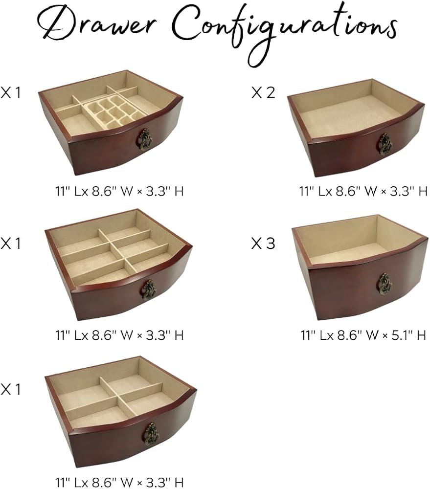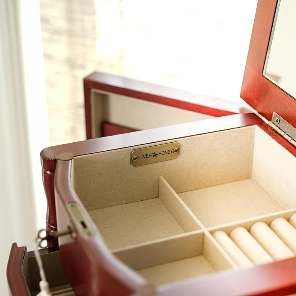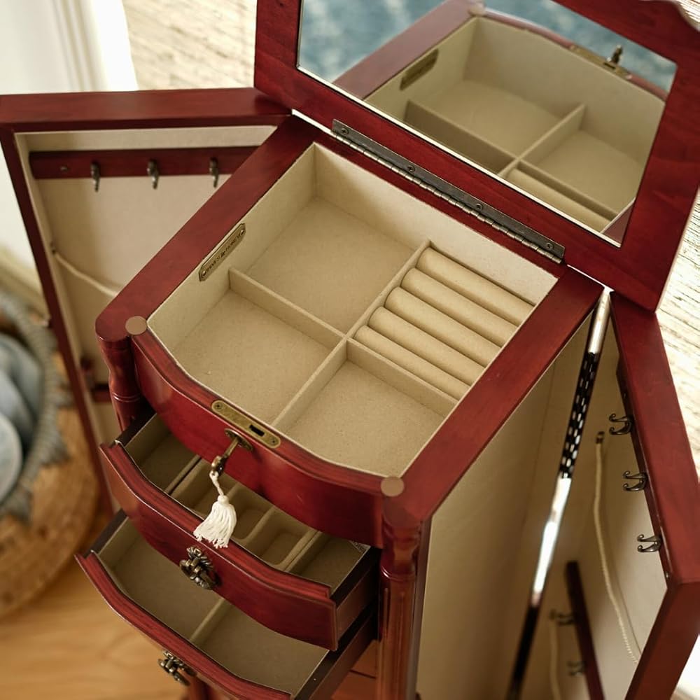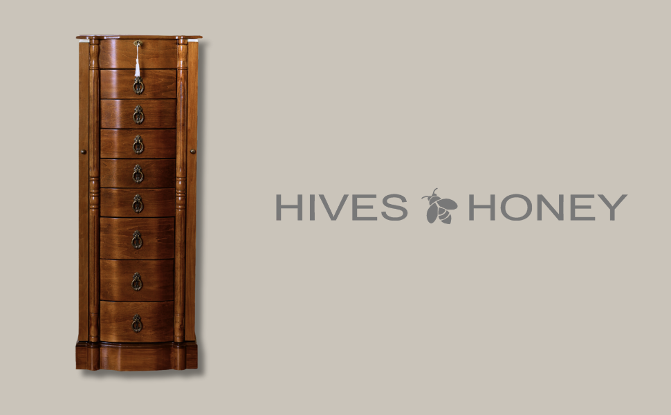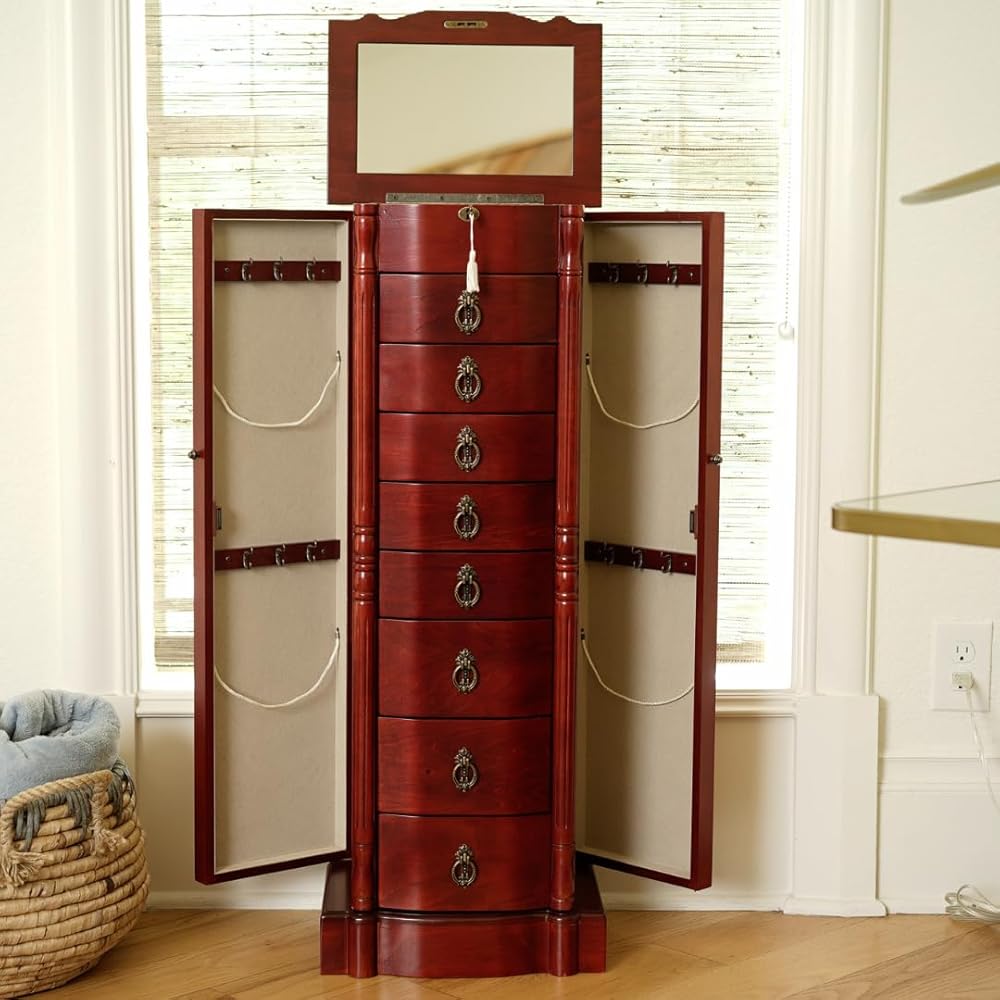 حامل خلايا النحل والعسل روبين، منظم قفل عتيق مع مرآة، 8 أدراج، خطافات قلادة، بطانة مضادة للتشويه، مجمعة بالكامل، خزانة مجوهرات من الخشب الصلب، 91.44 سم ارتفاعًا × 35.56 سم عرضًا × 25.4 سم عمقًا