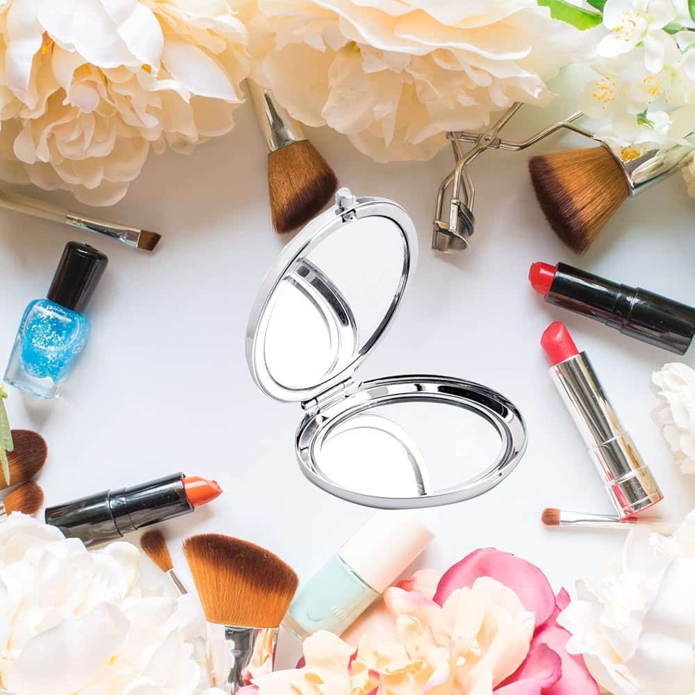 ✪ المادة والحجم: المادة: غلاف المرآة مصنوع من الحديد، باستخدام عملية الطلاء الكهربائي، لضمان عدم بهتان اللون، نقش دقيق بالليزر، واضح وحاد؛ مقاس 2.6 × 2.8 × 0.4 بوصة، عصري ومحمول، يمكن وضعه بسهولة في المحفظة وحقيبة اليد وحقيبة المكياج والحمل في أي وقت وفي أي مكان.