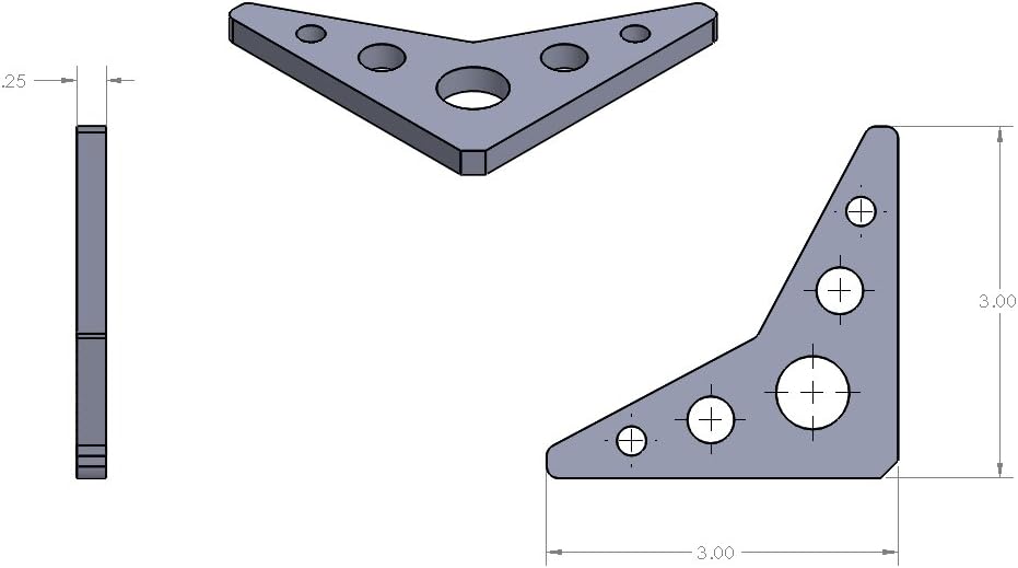 THICKNESS: 1/4" flat plate LENGTH: 3" WIDTH: 3" SHAPE: 90 degree triangle with 5 holes