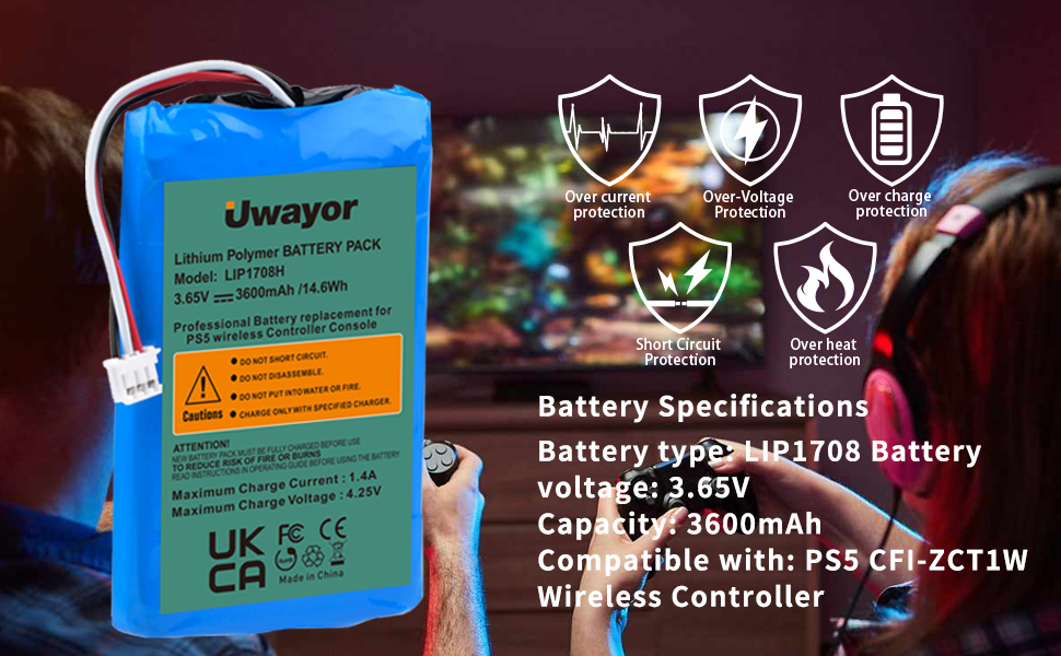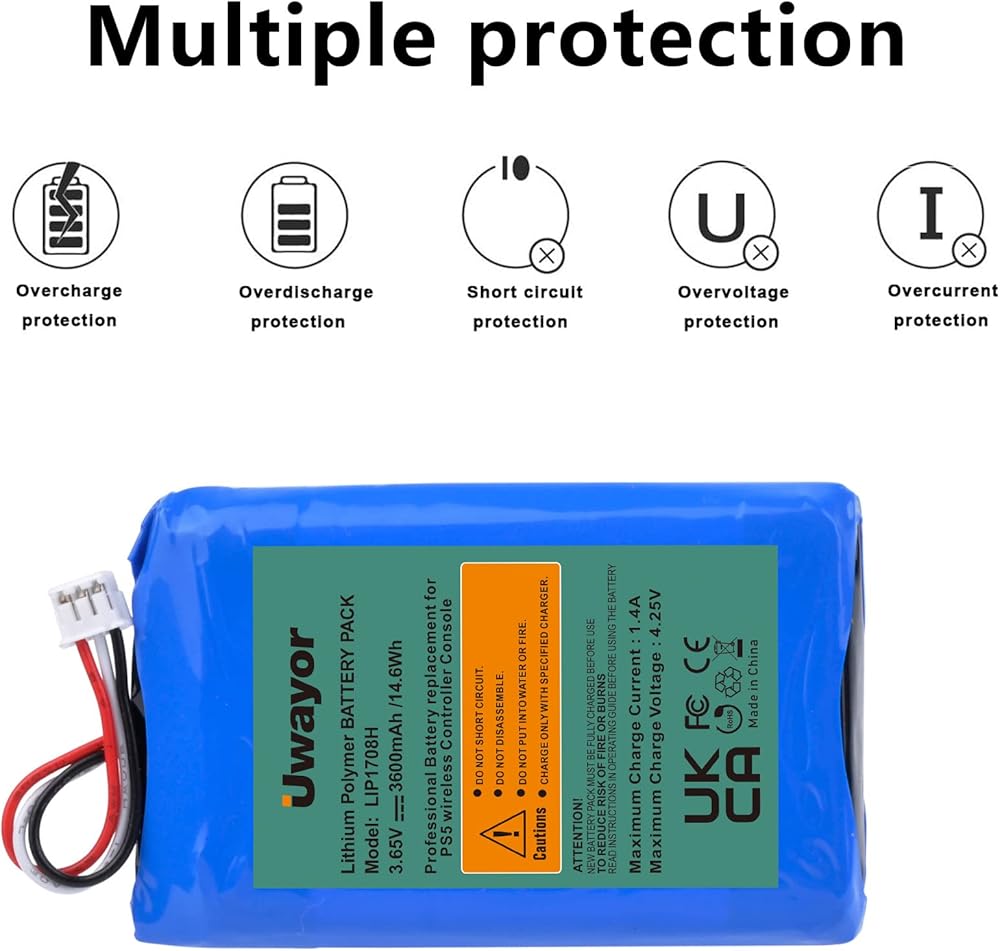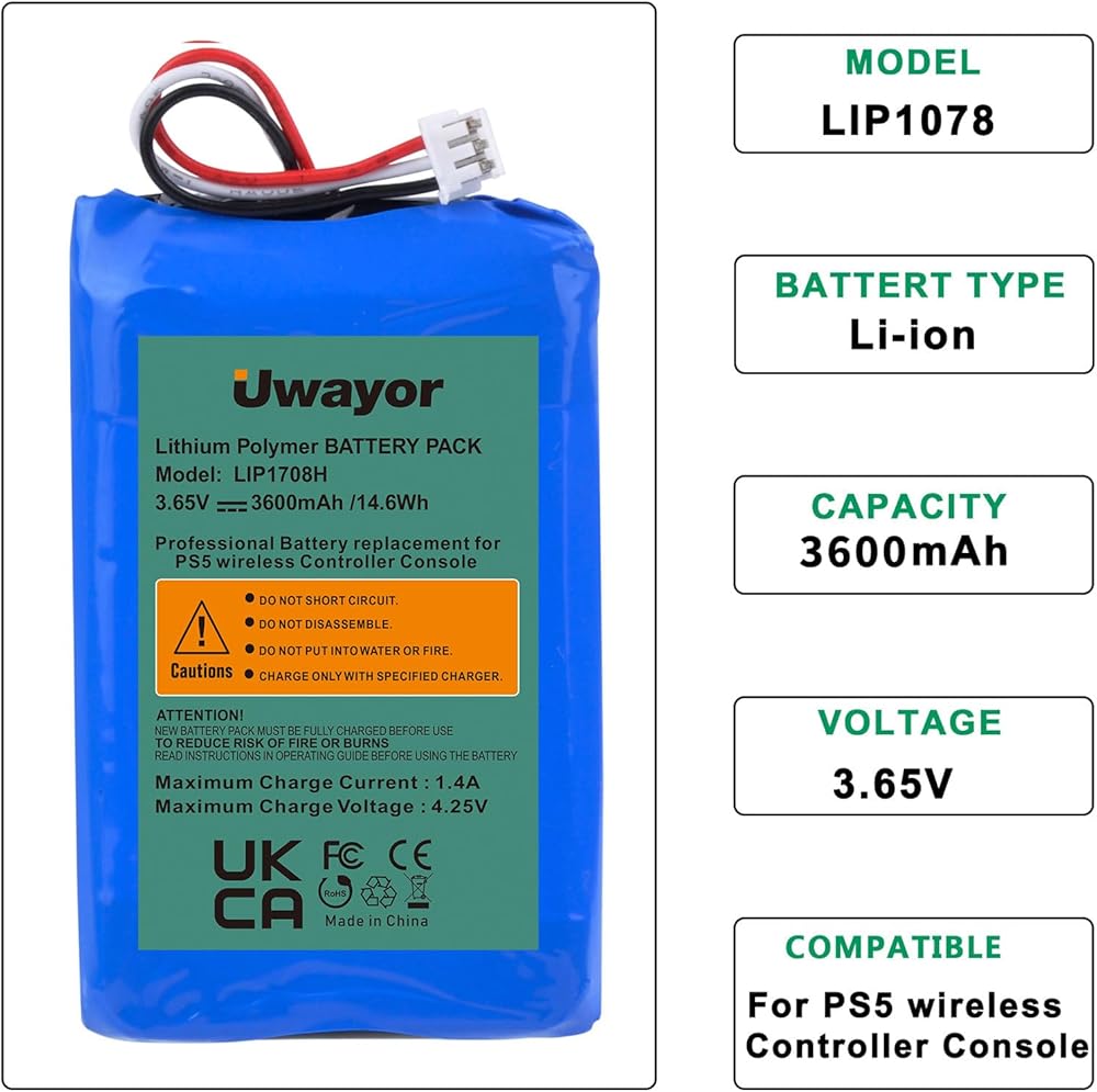 بطارية وحدة التحكم Uwayor PS5، بطارية 3600 مللي أمبير LIP1708 لجهاز Sony PS5 Playstation 5 DualSense CFI-ZCT1W وحدة التحكم اللاسلكية