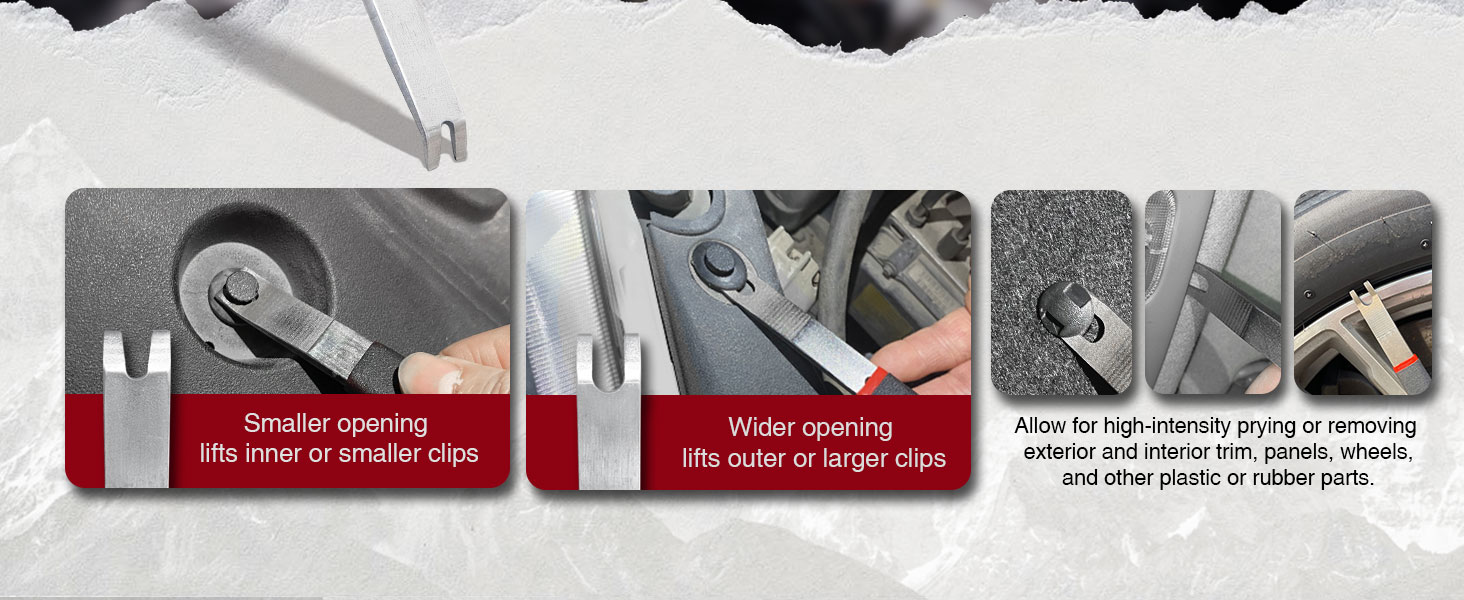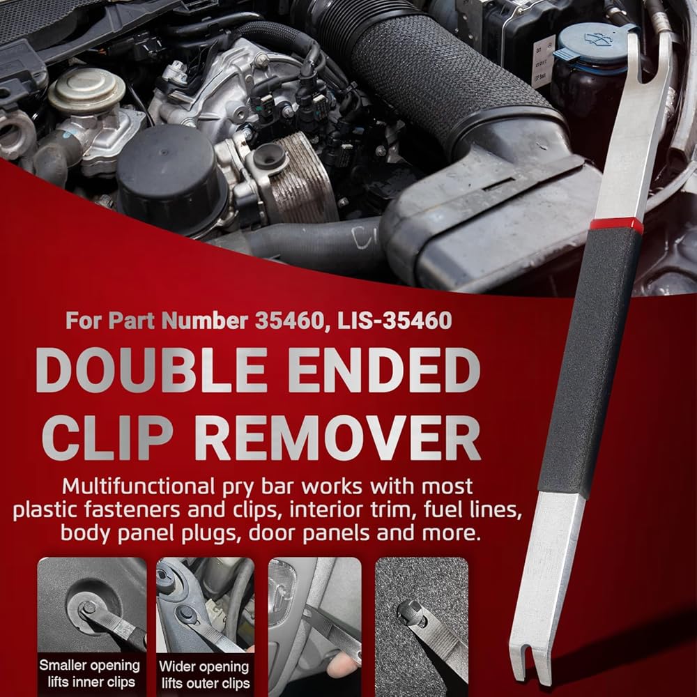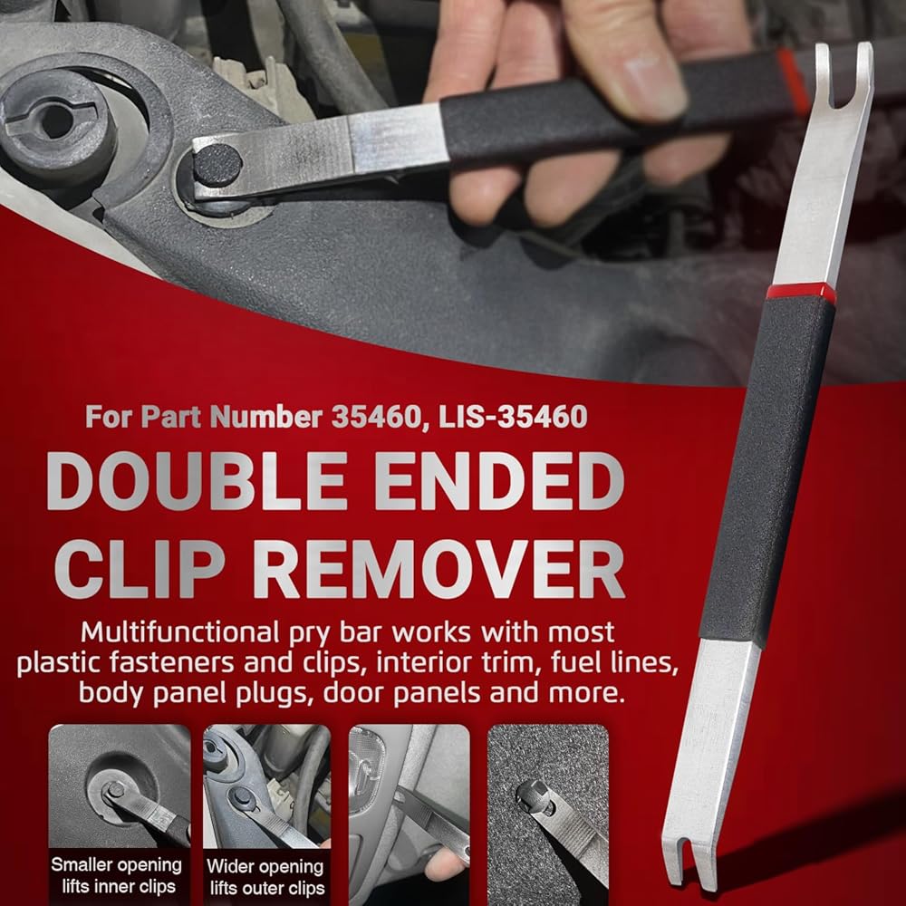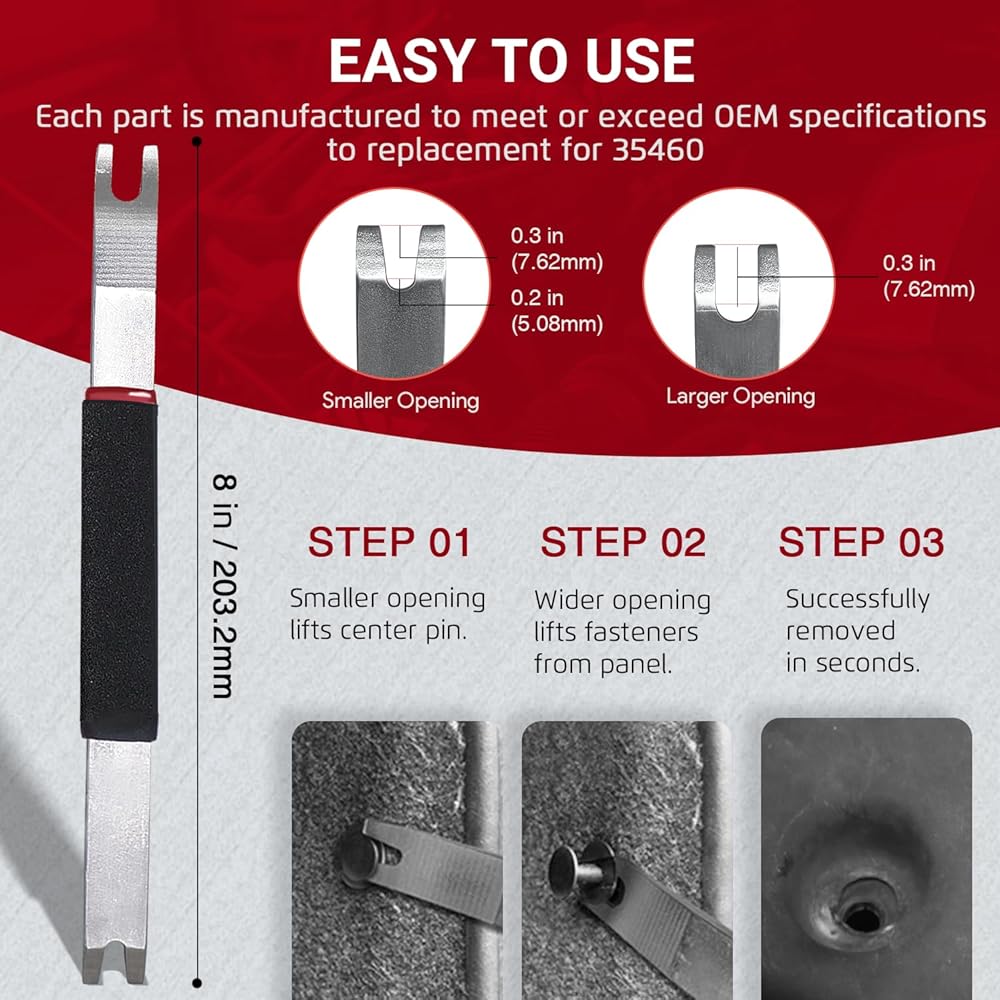 • 【مزيل مشبك احترافي】 يستخدم بشكل مثالي لإزالة سريعة وسهلة لمختلف أدوات التثبيت البلاستيكية والمشابك ودبابيس الدفع على الزخارف ومكونات الجسم للمركبات والقوارب. يسمح أيضًا بفك أو إزالة الزخارف الخارجية والداخلية عالية الكثافة، والمفروشات، والعجلات، وألواح الأبواب، ولوحات الأدوات، وحمل تجريد الطقس، وأغطية الرادياتير، وبطانات الرفارف، ومصدات الهواء والأجزاء البلاستيكية أو المطاطية الأخرى. تم تصنيع كل جزء ليتجاوز مواصفات OEM لاستبدال Lisle 35460، LIS-35460.
