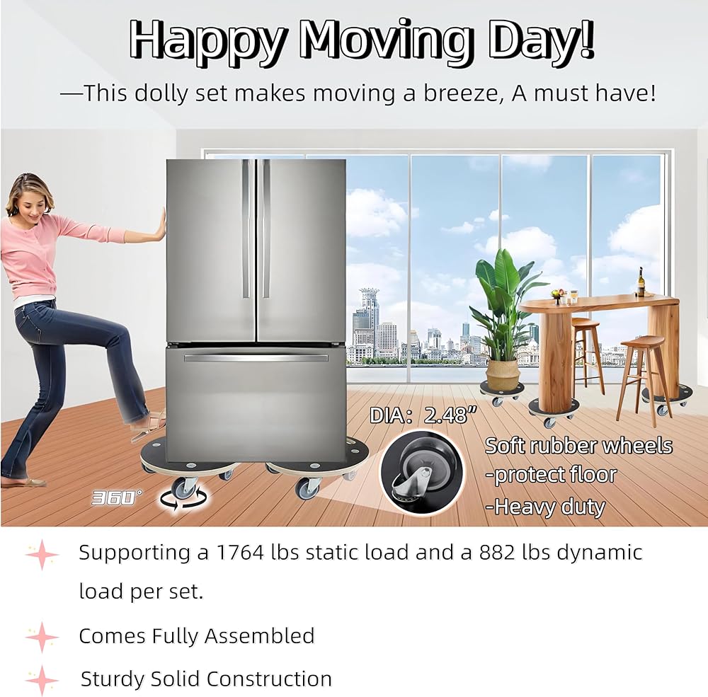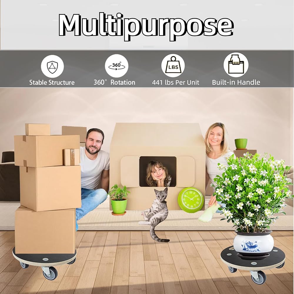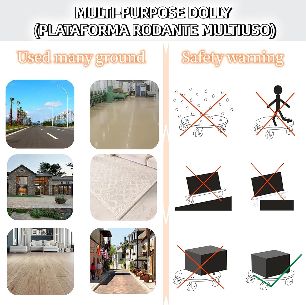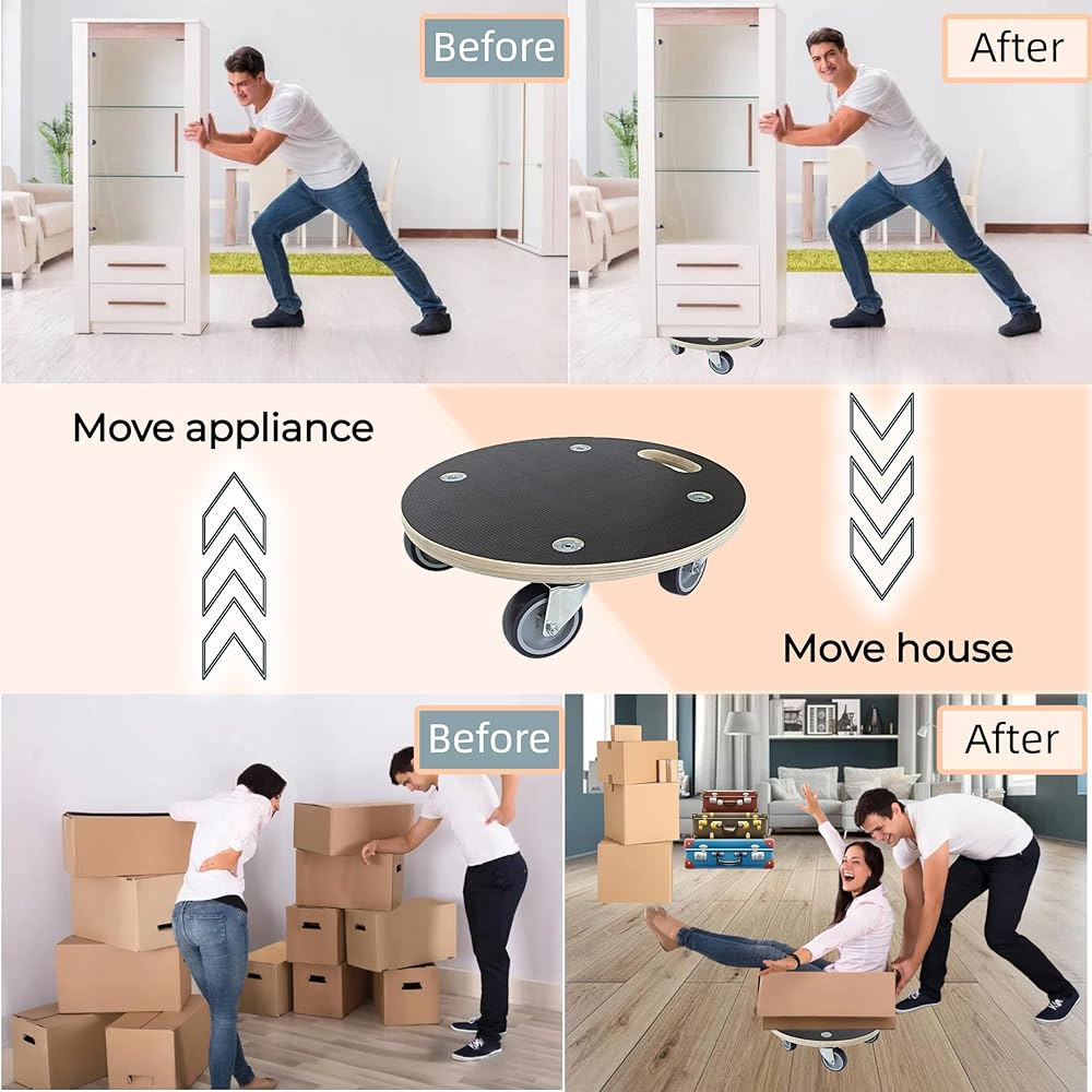 【قوية ومتينة】هذه الدمية المتحركة للأثاث مصنوعة من الخشب الرقائقي ذو الوجه الراتنجي الفينولي الممتاز، ويتميز بالصلابة والمتانة. سعة التحميل تصل إلى 551 رطلاً، ويمكنها بسهولة تحريك الأشياء الثقيلة مثل البيانو والغسالة وأريكة الأثاث والثلاجة والنباتات الكبيرة وغيرها من الأجهزة، مما يوفر جهدك بشكل كبير.