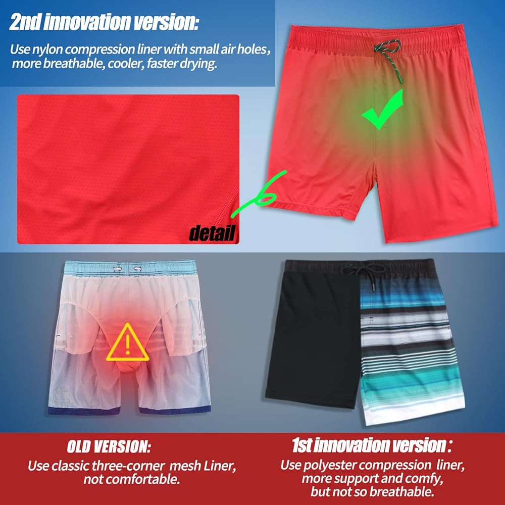 بناءً على بطانة الملاكم المضغوطة بفتحة الهواء، لن تتعرض للتهيج، ورائعة، ومريحة، ومسامية، وسريعة الجفاف. بدلة السباحة هذه تشبه تمامًا ارتداء الملابس الداخلية. لا تتكتل ولا داعي للقلق بشأن الاحتكاك مثل البطانة الشبكية الكلاسيكية. إنها تحمل "الأشياء" في مكانها بشكل أكثر راحة وتبقيها مخفية بشكل أفضل من الشبكة. لذلك لا تشعر بالحرج عند الخروج من الماء. رائع جدًا للرجال!