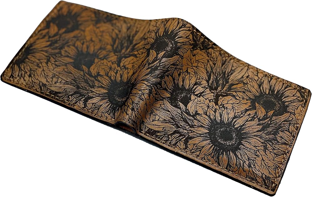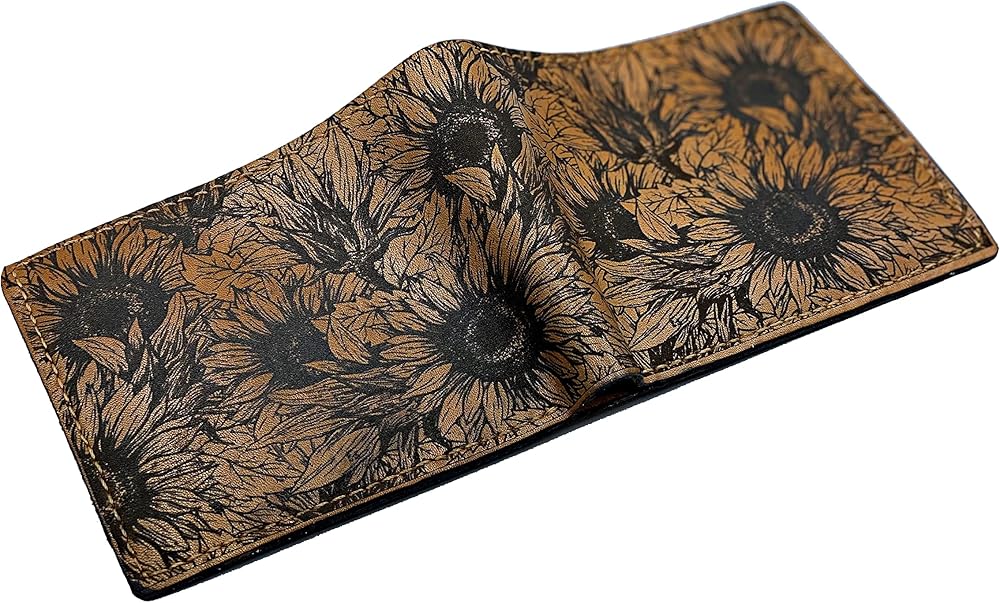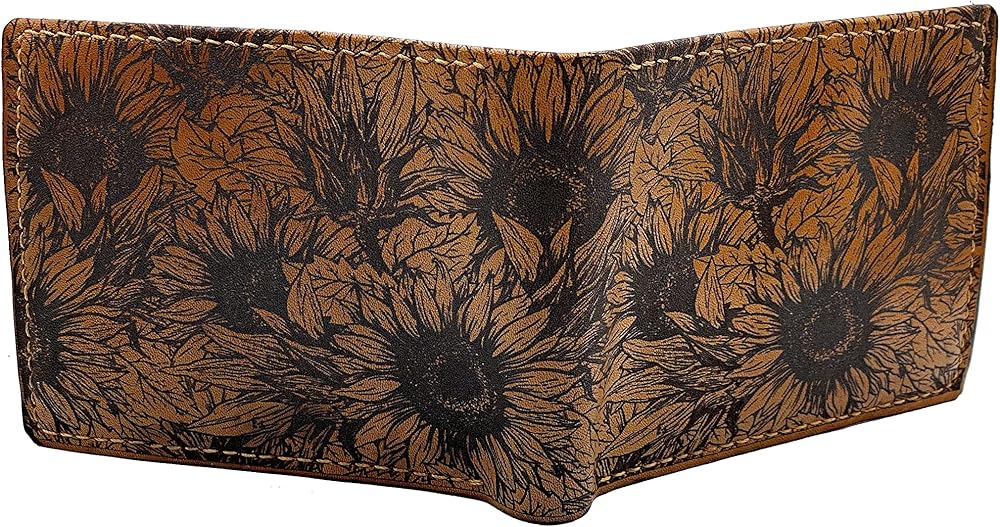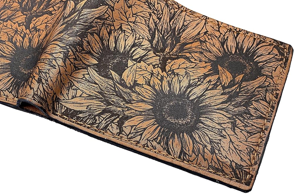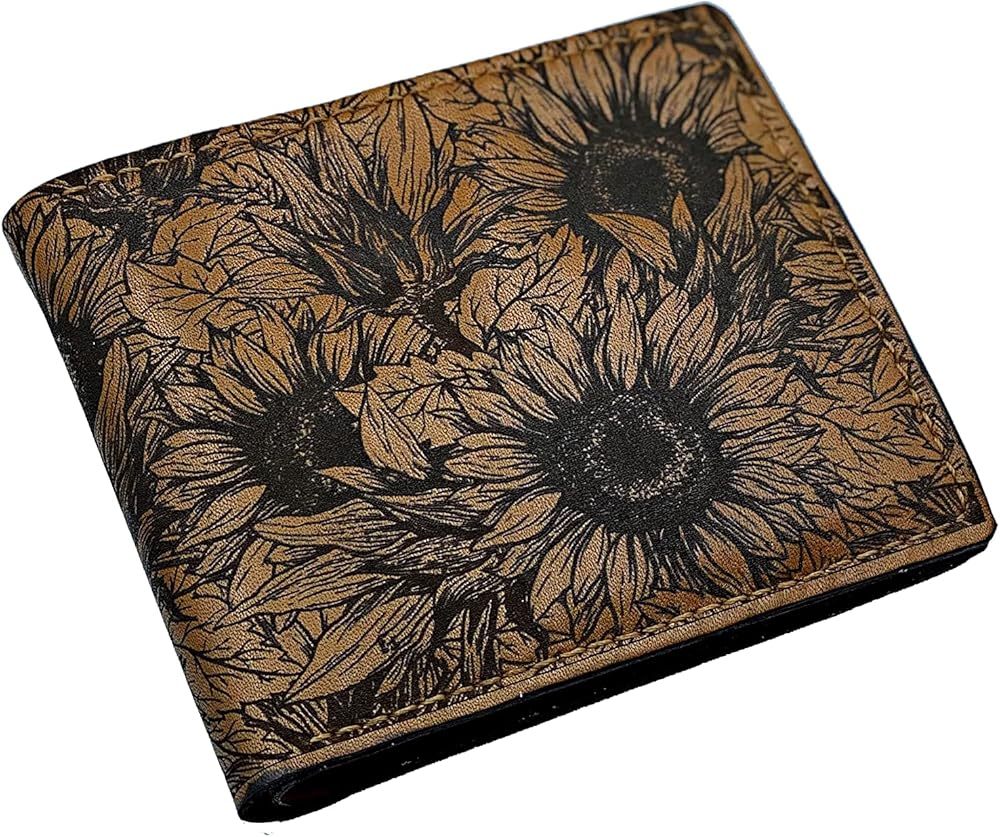 Mayan Corner - محفظة رجالية مصنوعة يدويًا من الجلد الطبيعي، محفظة ثنائية الطي، محفظة بنمط عباد الشمس - 3SA